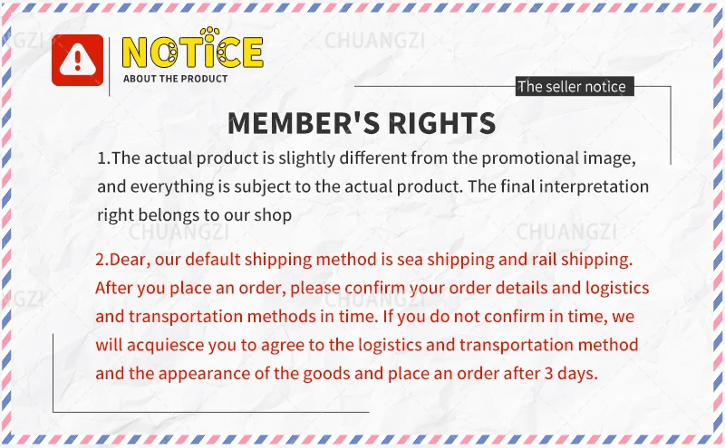Our default mode of transportation is sea or rail transportation. This kind of transportation is door-to-door and does not require customs declaration. The time limit is 45-70 days. You can also choose express. The aging is 15-30 days. Choosing express delivery requires you to pay additional costs, while express delivery requires you to handle customs declaration fees and customs clearance issues yourself. Of course, when you deal with customs clearance issues, we will assist you in customs clearance and provide you with the documents required for customs clearance. Note: Our service does not include handling customs declaration fees and customs clearance issues incurred by express logistics. And during the transportation, we do not accept any form of rejection or dispute. If you have any questions after receiving the goods, please contact the seller as soon as possible. We will serve you wholeheartedly, but do not accept malicious submission of disputes. Once submitted, we will automatically give up after-sales service by default.