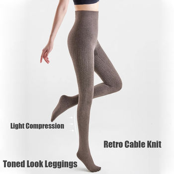 Women Autumn winter Soft cotton Retro Cable Knit pantyhose Girl Light Compression versatile Tight Thermal Fleece Lined Leggings