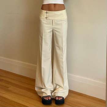 Vintage Y2K Korean Streetwear Pants Woman Low Rise Straight Loose Beige Trousers Button Up Basic 2000S Women Casual Pants
