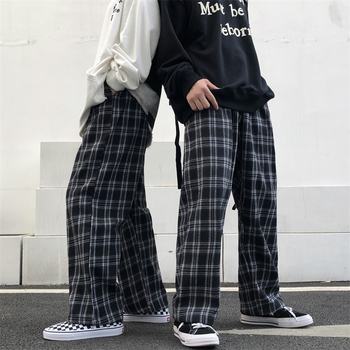 Oversize Pants Women Sweatpants Summer Fashion Black Plaid Casual Pants Elastic Waist Casual Pockets Student Unisex Trousers