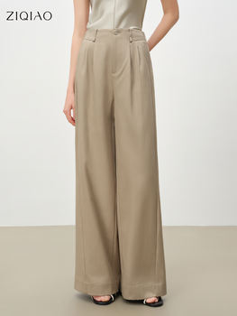 ZIQIAO 2026 Spring Women’s Flowy Relaxed Wide Leg Long Pants Elastic Waist and Side Seam Design for Casual Daily Wear