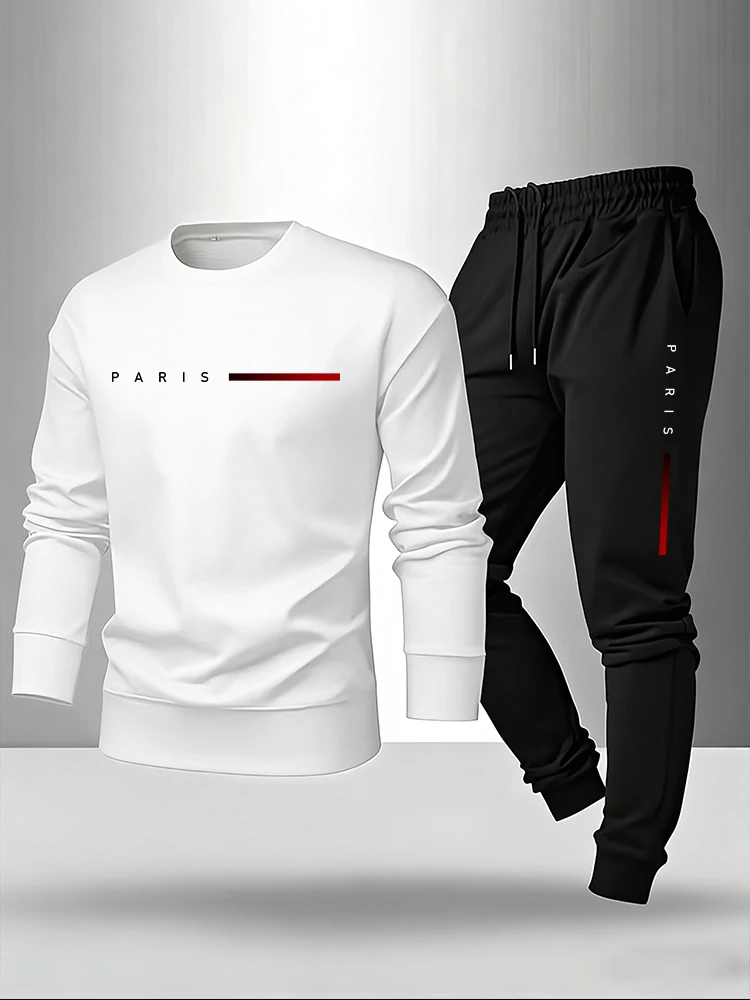 Paris Fashion Men Longsleeve T-shirt and Sweatpants Urban Casual Sweatshirt Outfit Autumn Home Outdoor Comfort Warm Men’s Set