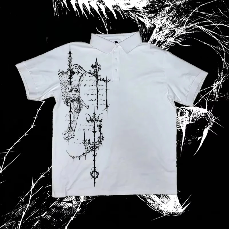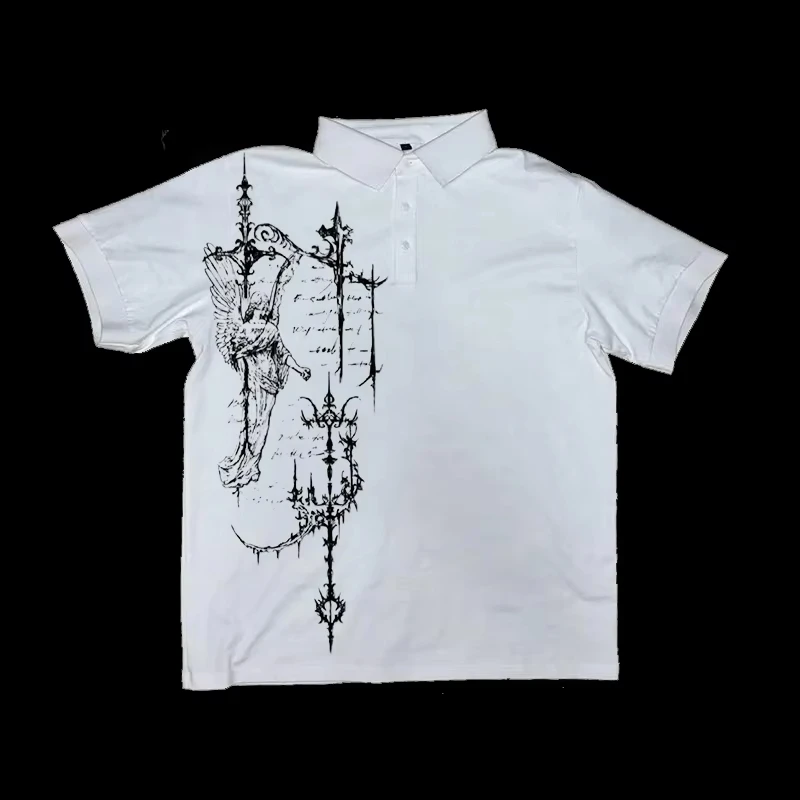 Peace Flag America Retro Polo Shirt Y2k Streetwaer Letter Embroidery Lapel Shirt Casual Short Sleeve Jersey Hip Hop Men Clothing
