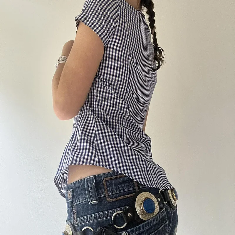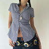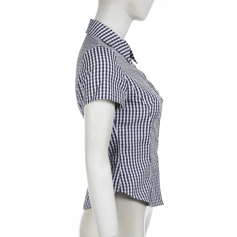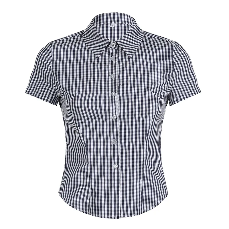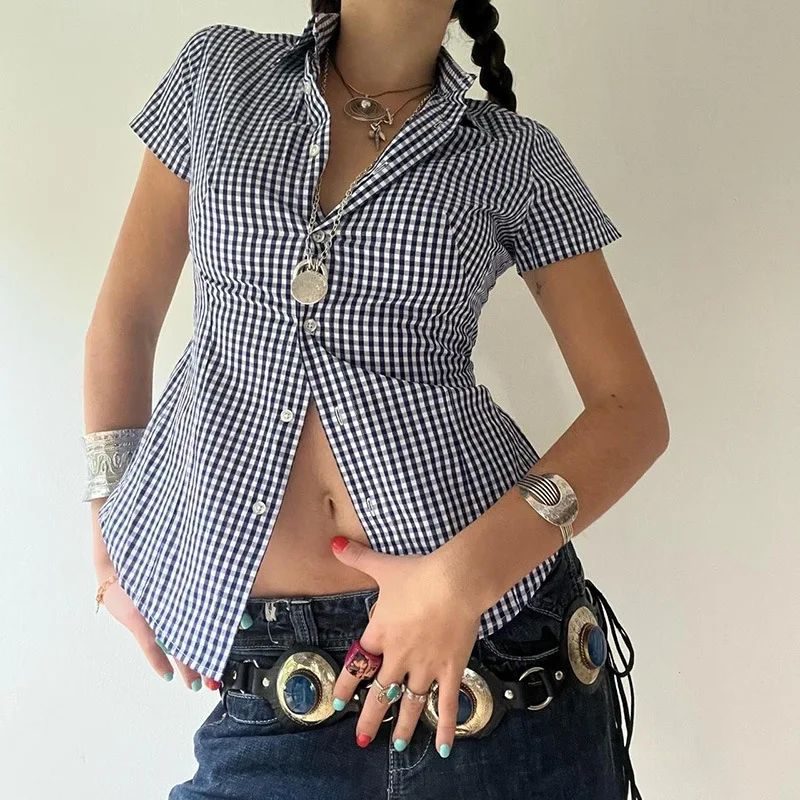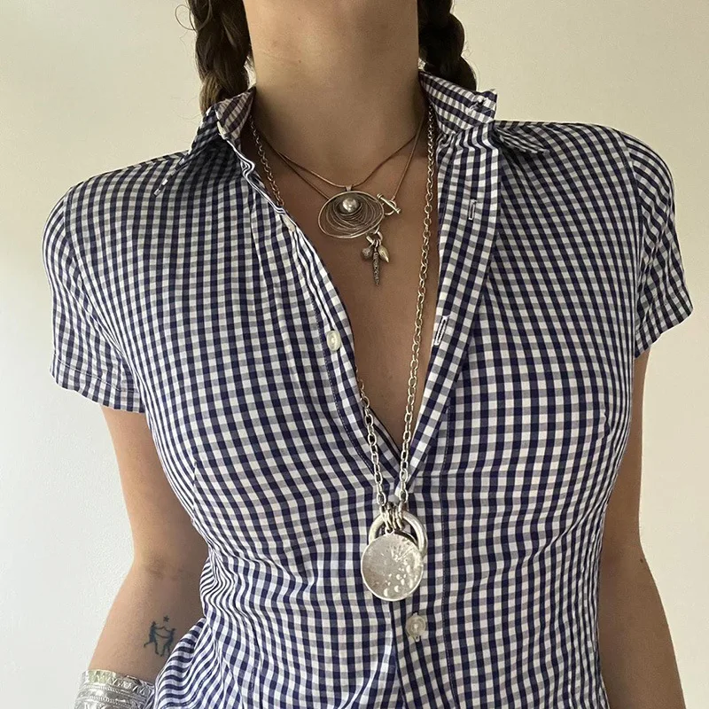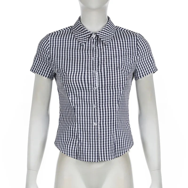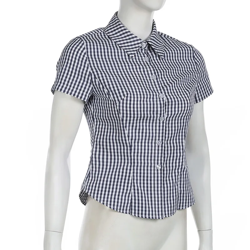 Plaid Polo Neck Slim Fit Shirt American Street Style Button Splice Casual Open Cardigan for Men