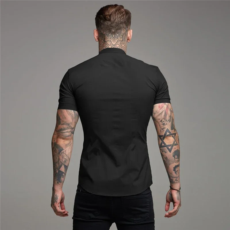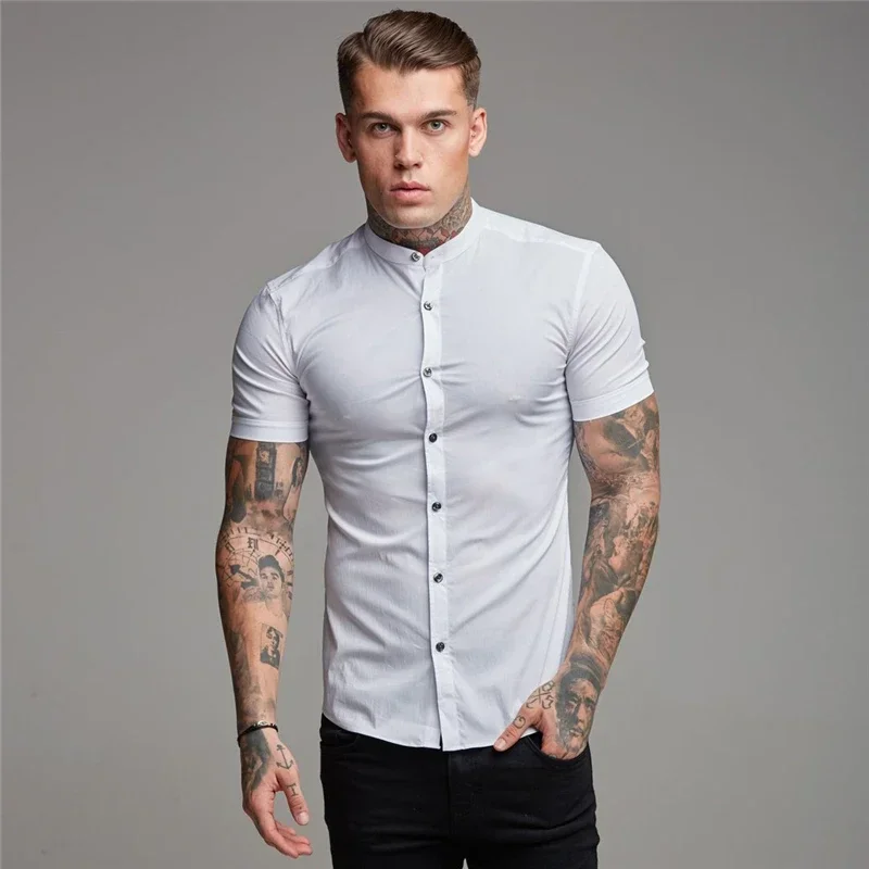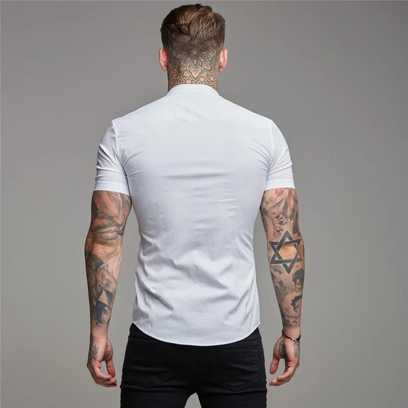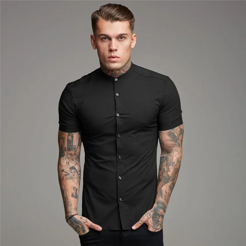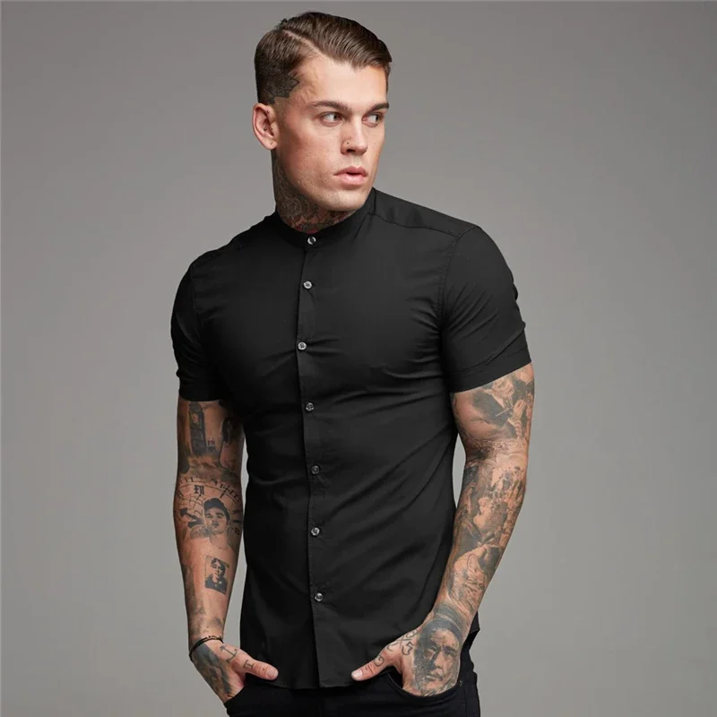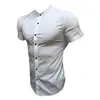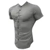 Plain Men Casual Short Sleeved Fitness Shirts Summer Muscle Training Cardigan Casual T-shirts Slim Fit Breathable Quick Dry Tops