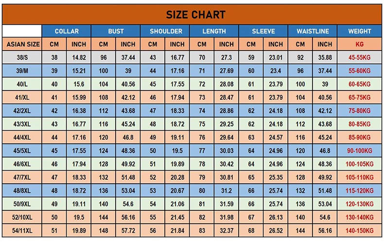 2) Normally, the shirt size should be bigger than your body size. you can check your usual shirt.  if your body chest is 100cm, we suggest you choose shirt with 104cm or 108cm. This product is a slim fit, it is recommended to buy one size larger than usual.
