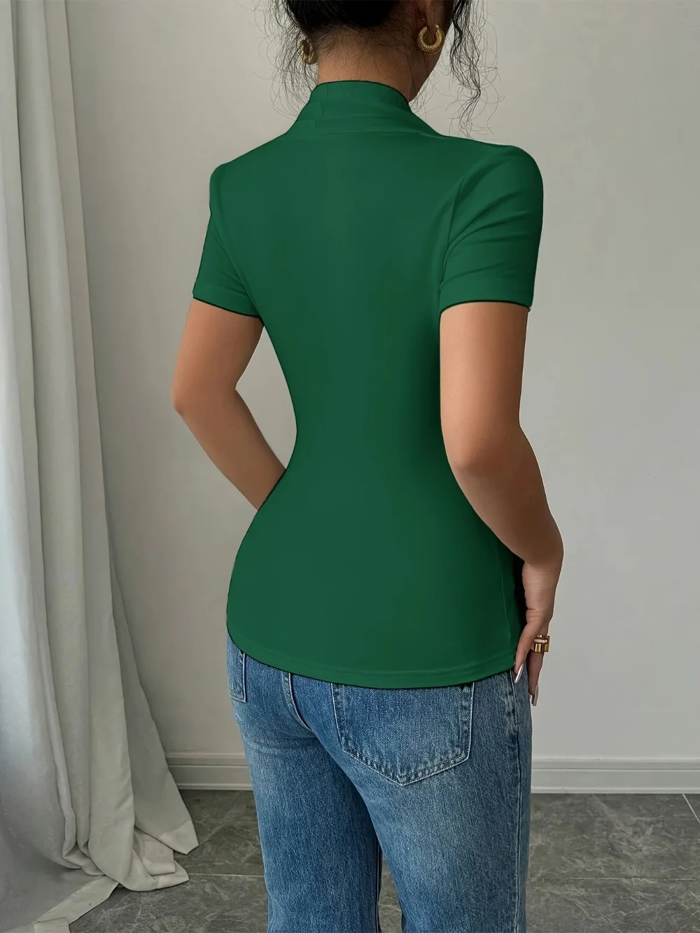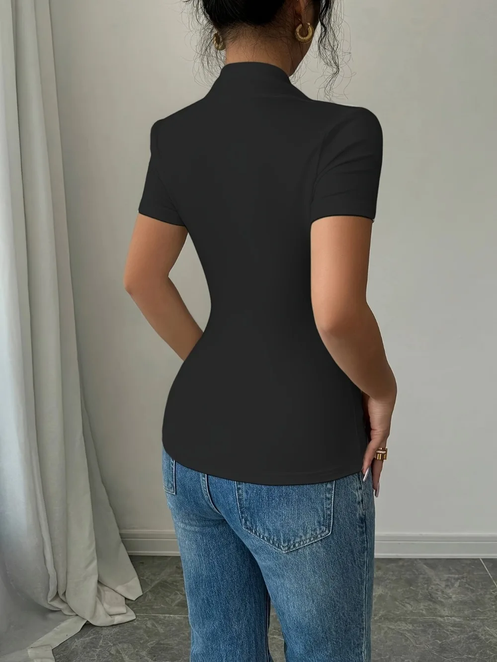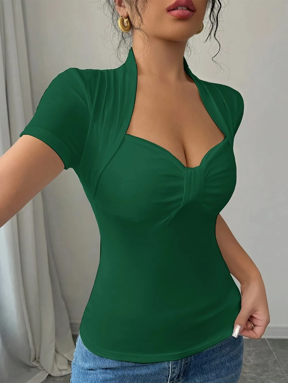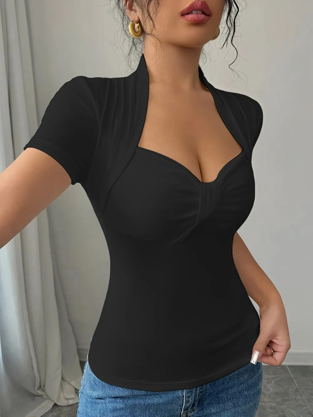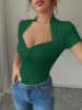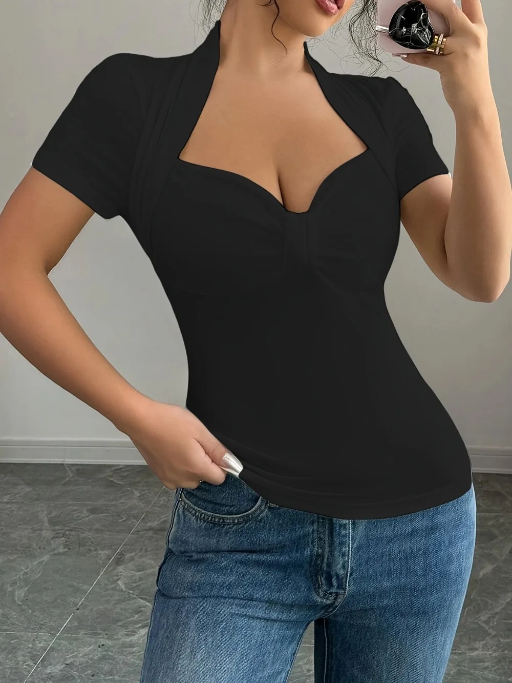 Plus Size V Neck Women T-Shirt Casual Short Sleeve Slim Fit Tops Spring Autumn Fashion Simple Elegant Basic Solid Shirt Bodysuit