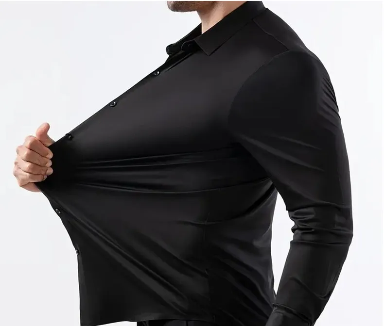 Premium Men’s Ultra Stretch Dress Shirts Long Sleeve High Quality Business Formal Wrinkle-free Soft White Social Male Clothing
