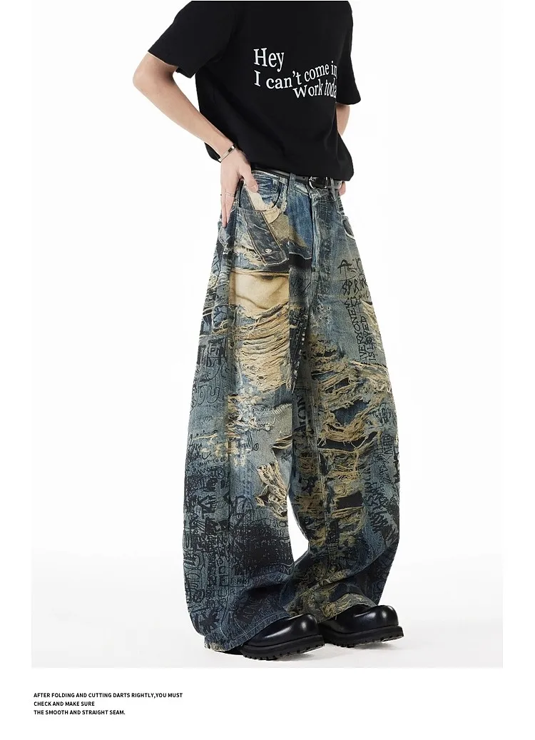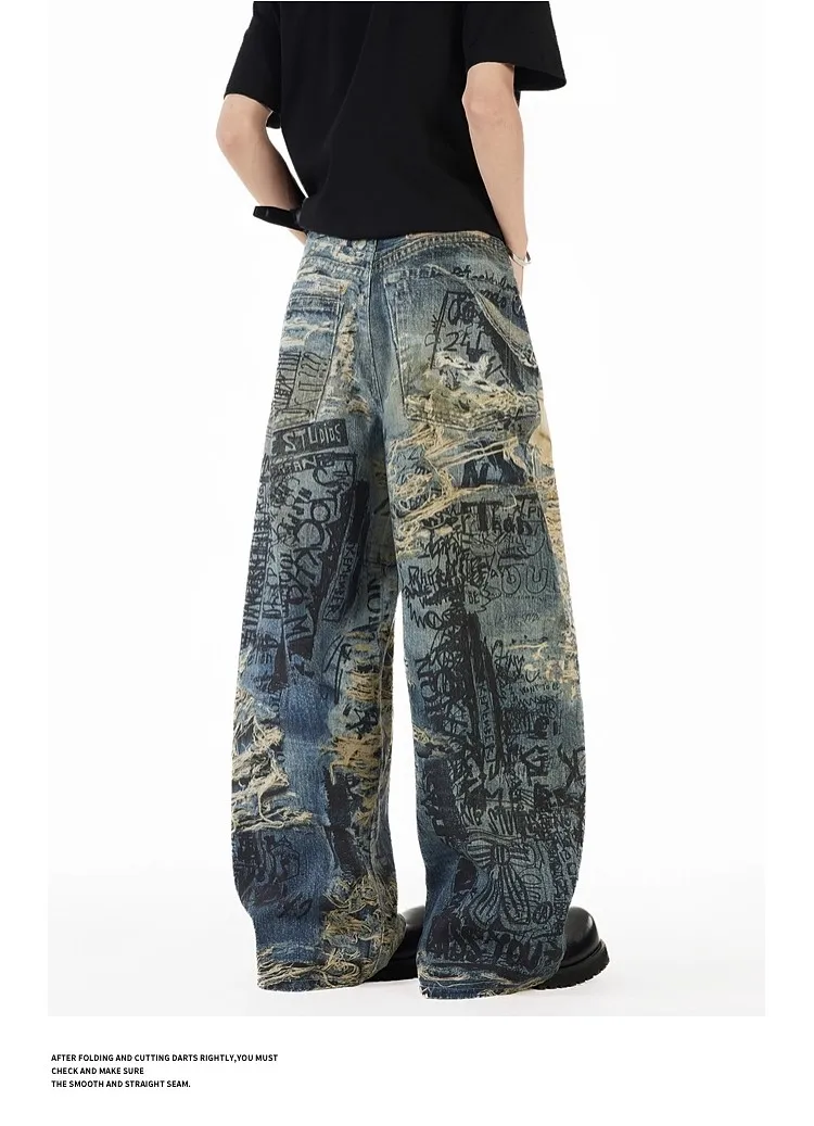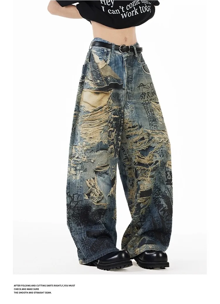 Printed Jeans For Women 2025 New Y2K Vintage Denim Pants Hip Hop Fashion Wide-leg Baggy Jean Streetwear Trousers
