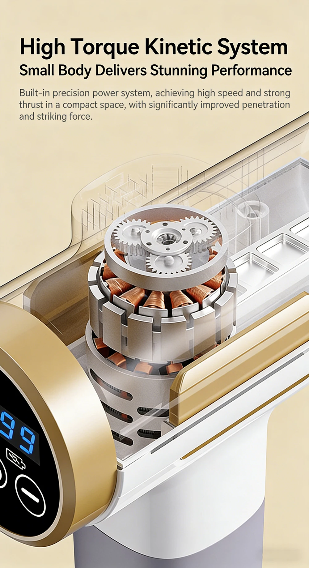 Built-in precision power system, achieving high rotation speed and strong thrust in a compact space, with significantly improved penetration and striking force.