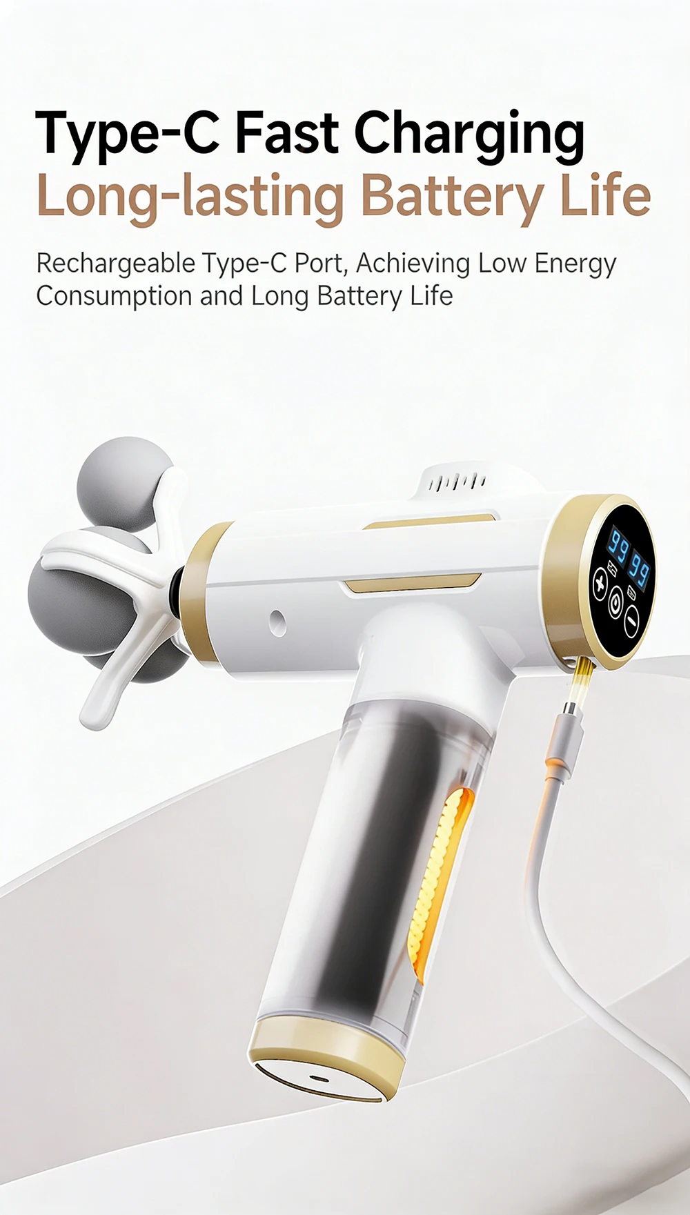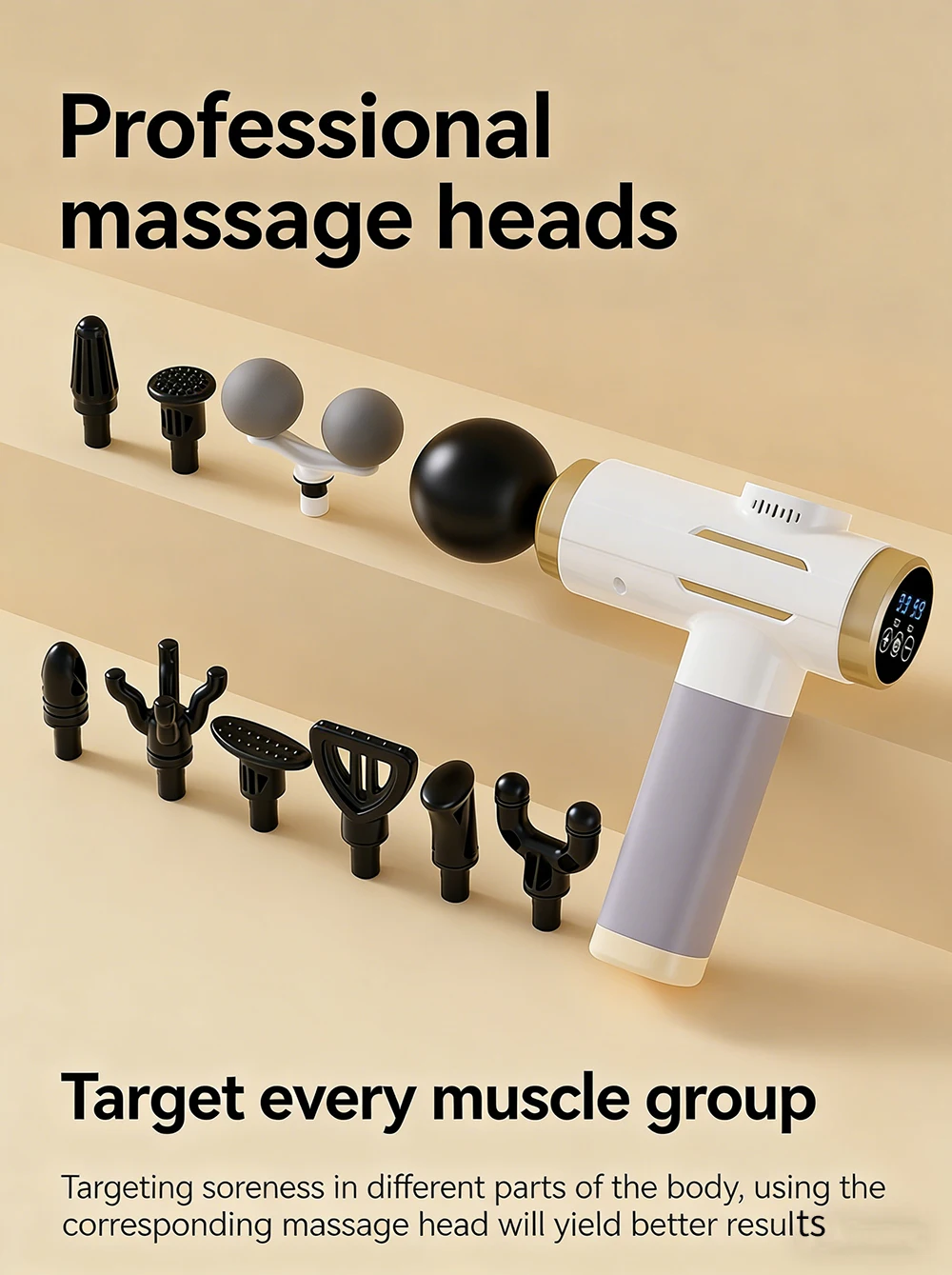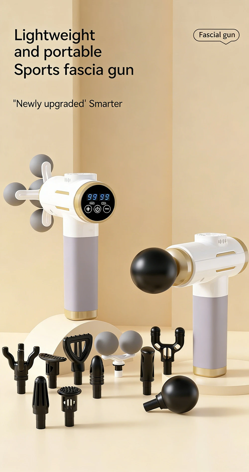 ①5-ball massage head, suitable for back, shoulders, legs, buttocks and other large muscle groups.