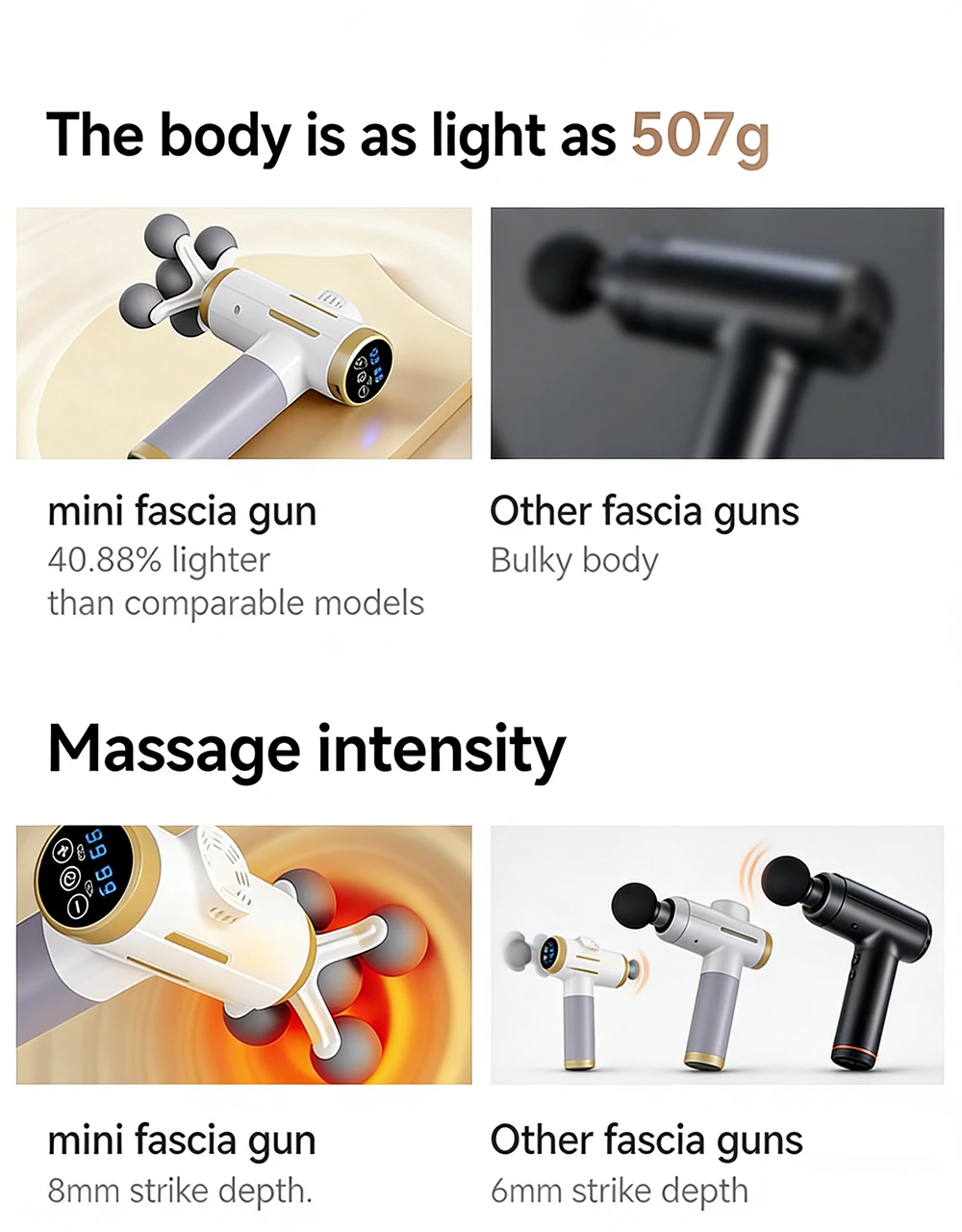 Precise deep massage,relieves muscle tension and soreness, enjoy a comfortable experience.