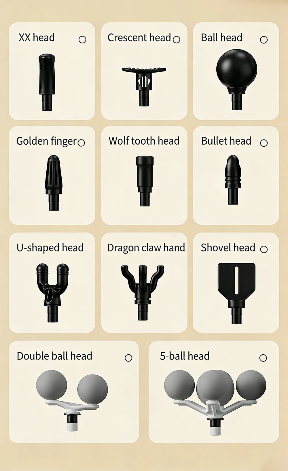 ⑪U-shaped massage head, suitable for cervical spine, spine, Achilles tendon, calf sides.
