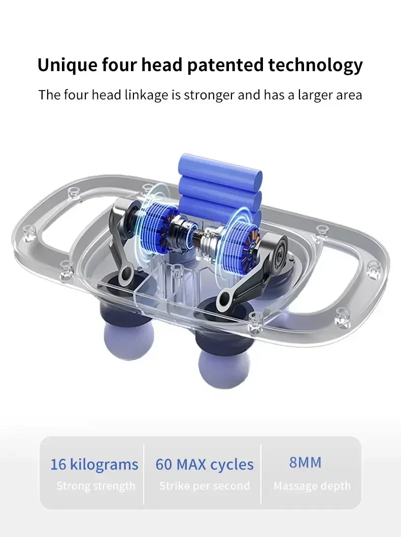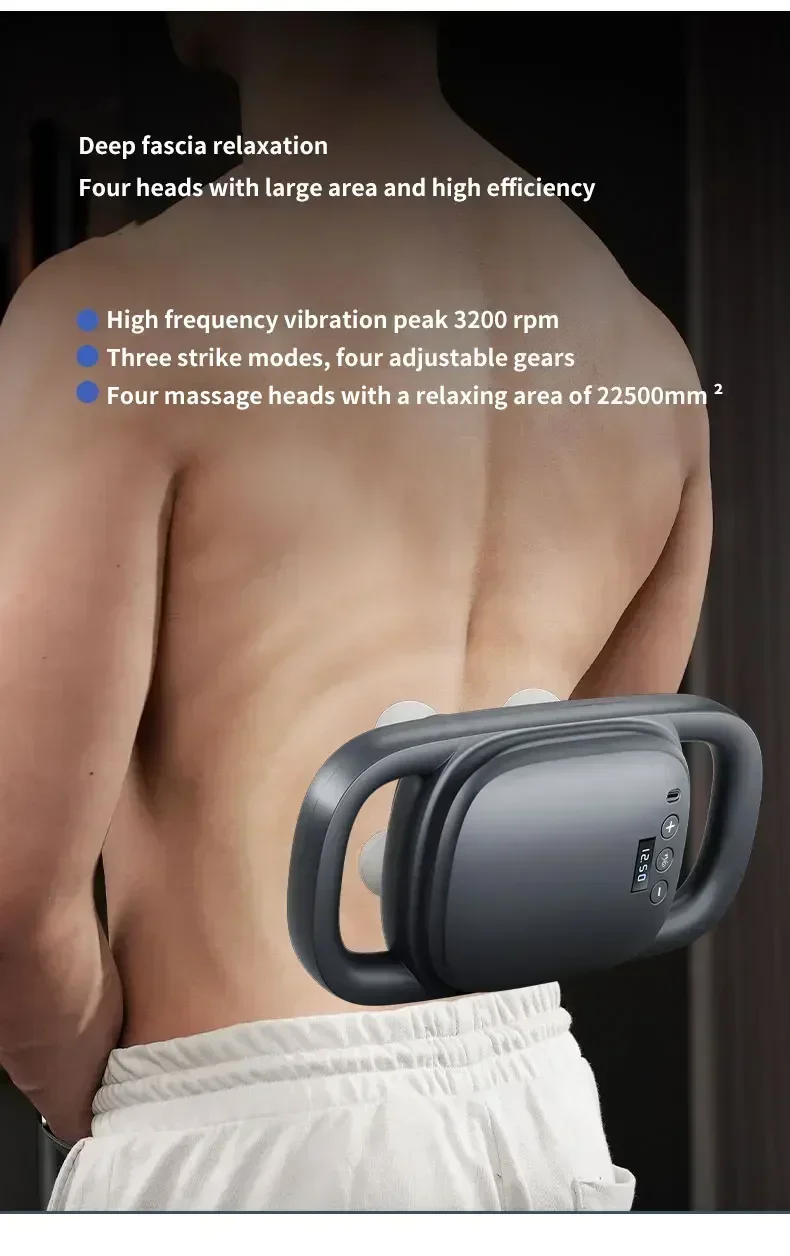 Introducing our groundbreaking 4-Head Fascia Gun, where one gun equals four, delivering a cascade of targeted muscle relief with every pulse. Boasting a staggering 20kg of impact force and an expansive massage area of 22300 square millimeters, it redefines the massage experience.