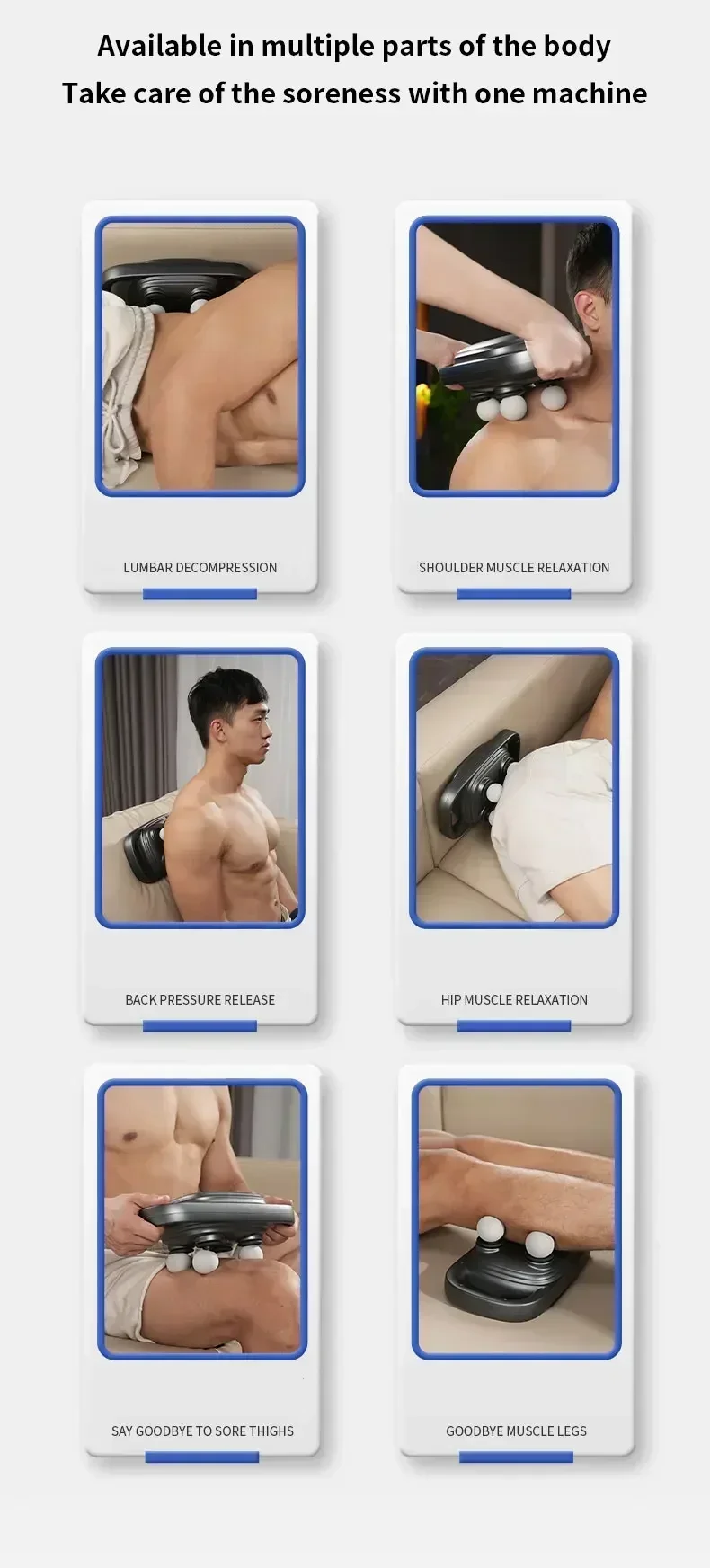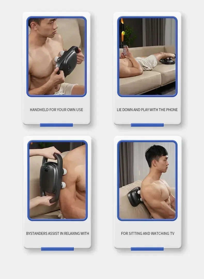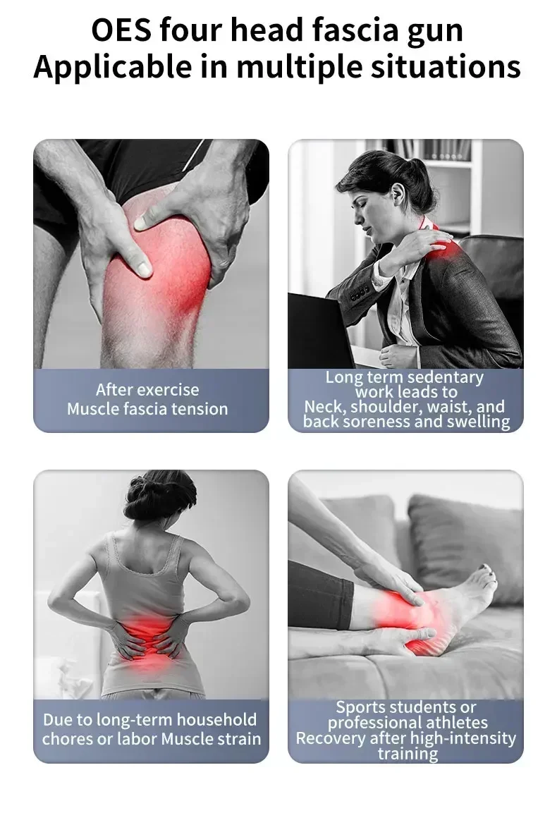 Equivalent to having four fascia guns at your disposal, our 4-Head Fascia Gun delivers high-frequency vibrations that effortlessly soothe muscles and fascia. With its expansive massage area, it outperforms traditional guns by providing targeted relief across multiple muscle groups simultaneously.