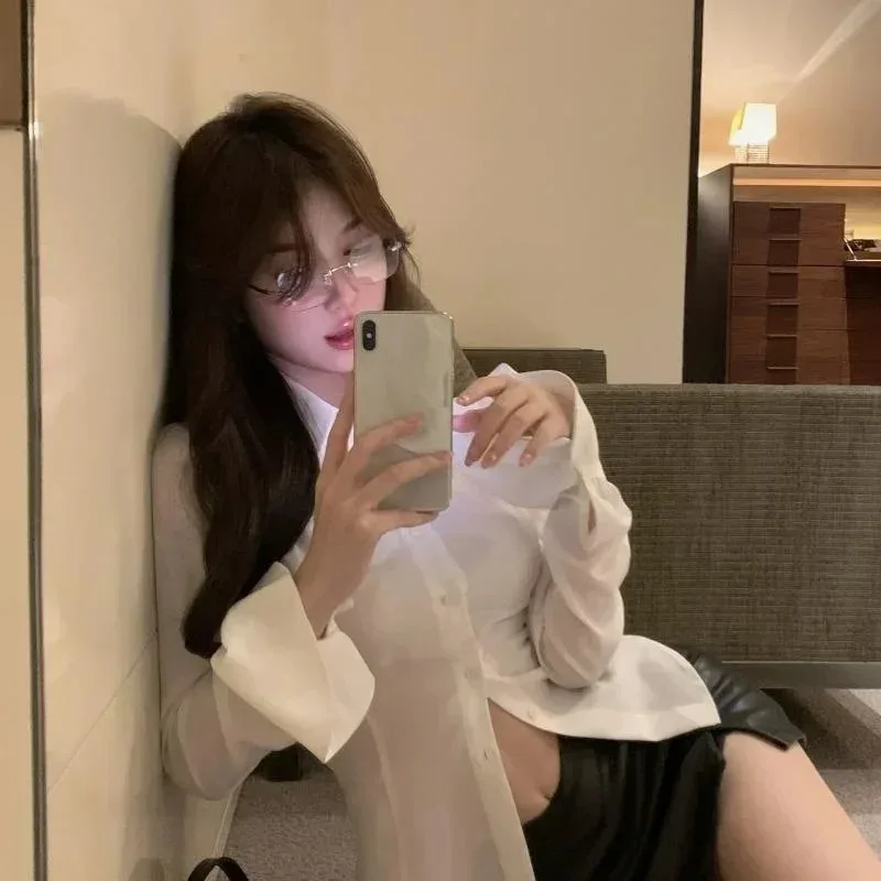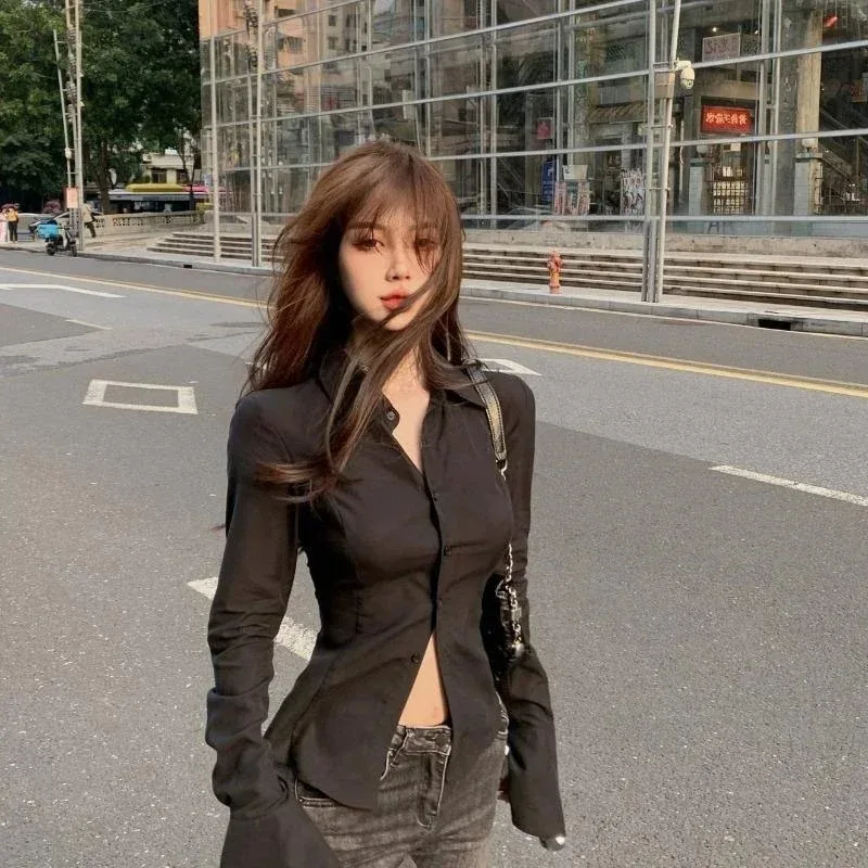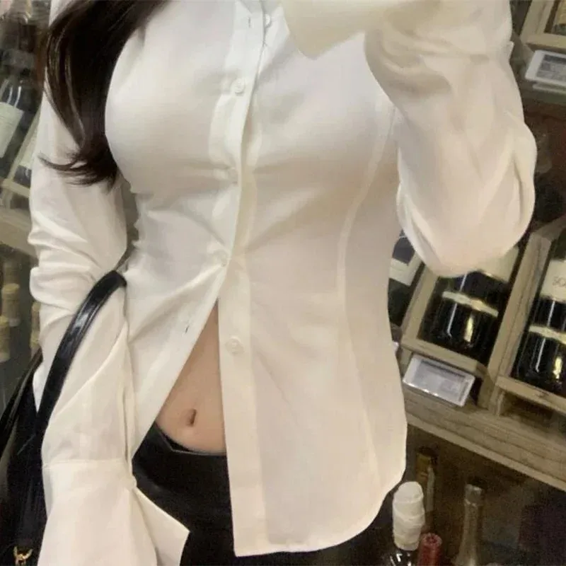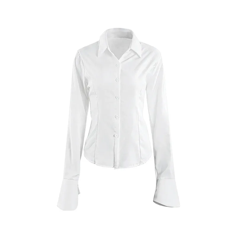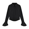 Sexy Slim Flared Sleeve Women’s Shirt Solid Lapel Single-breasted Back Bandage Tunic Female Blouses Spring Trend New Lady