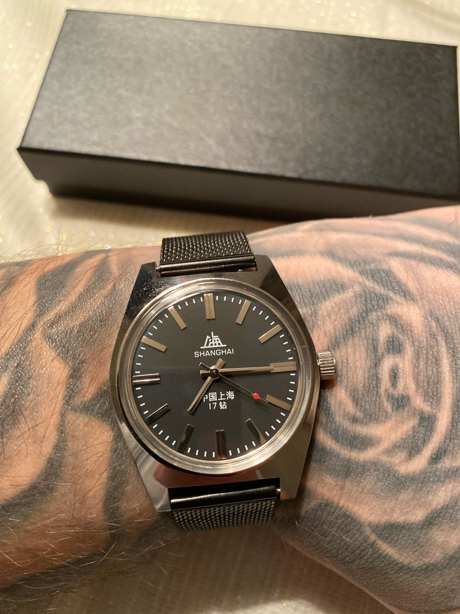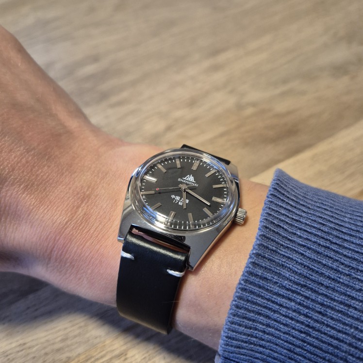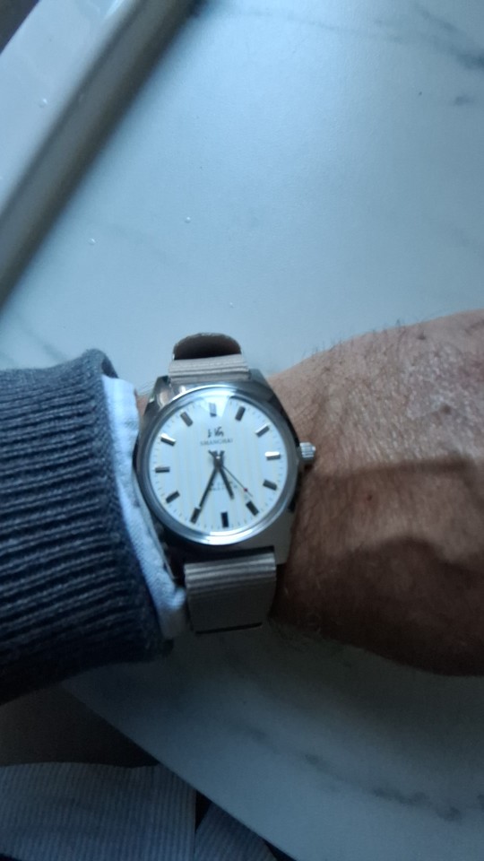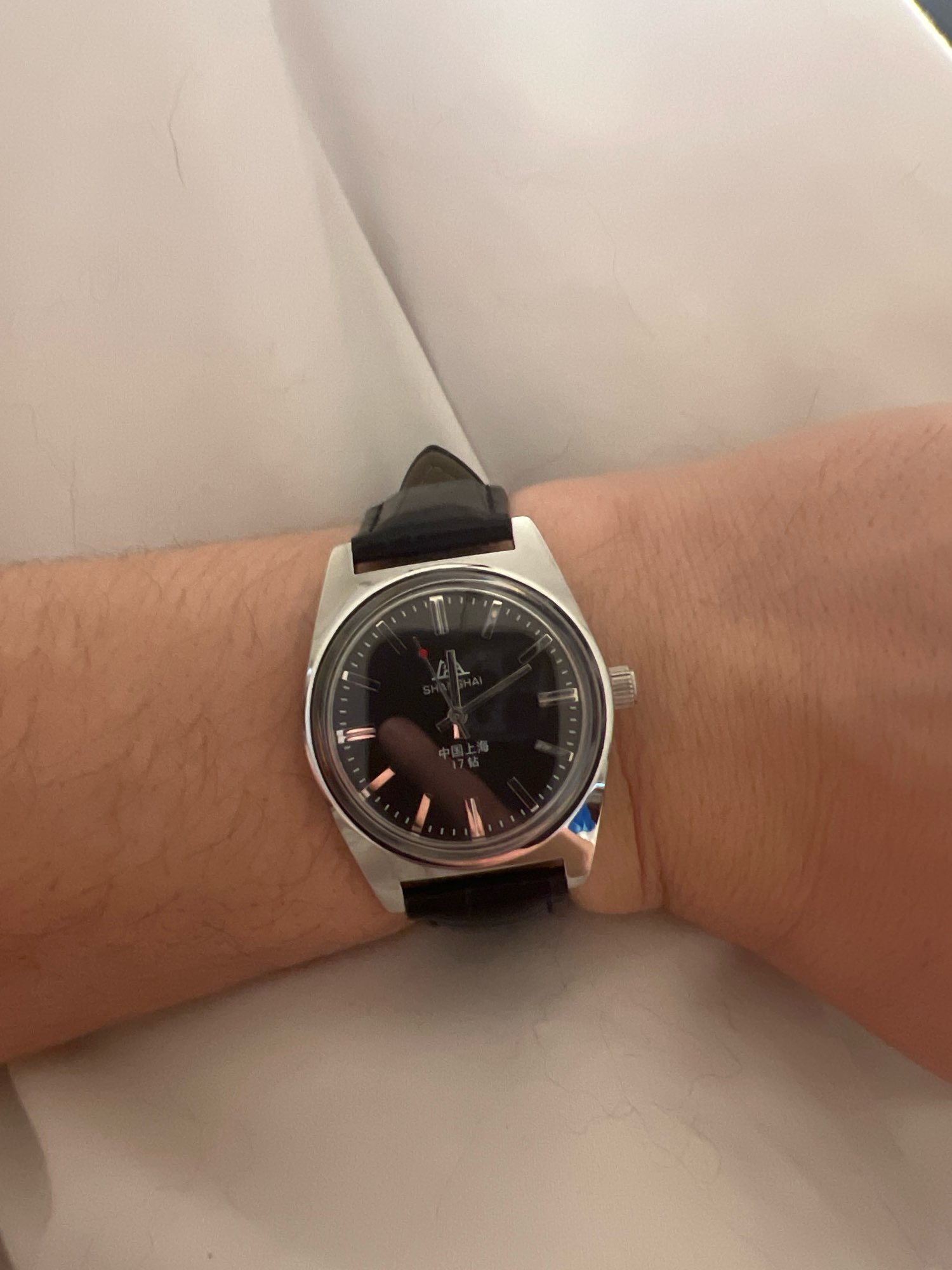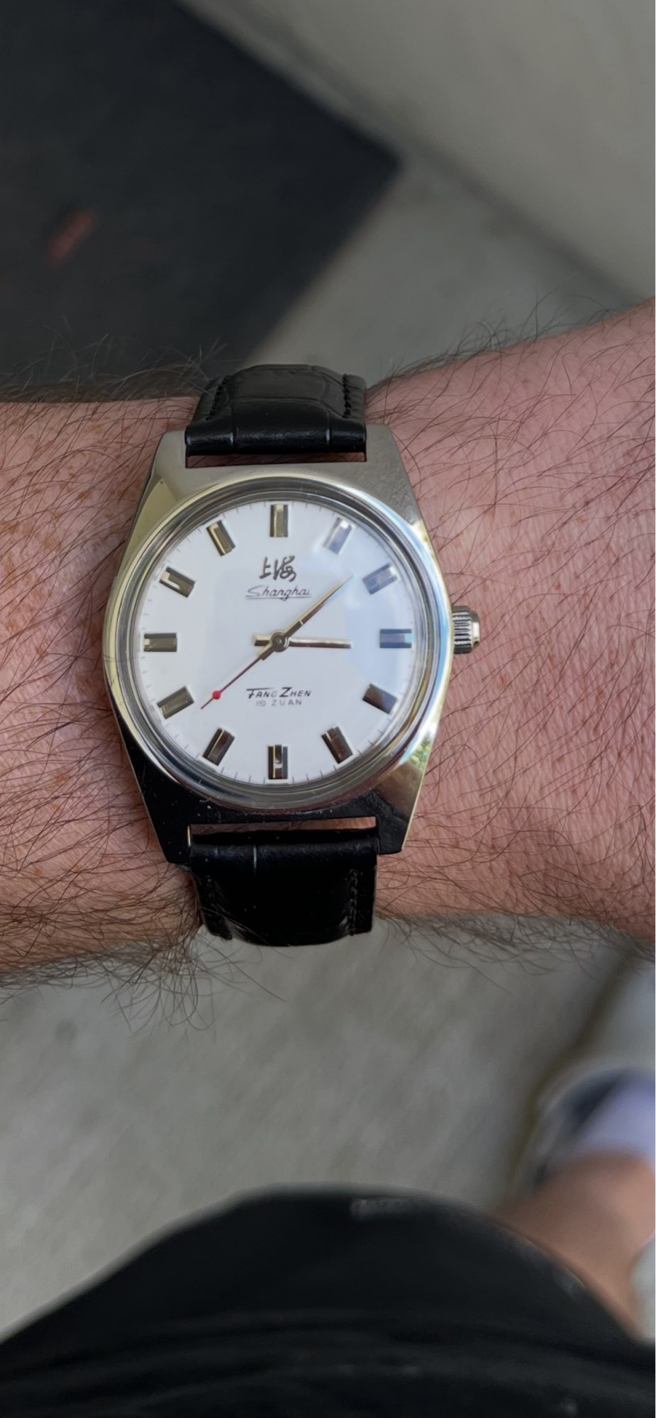 Beautiful appearence and quite accurate for a simple mechanic movement. Suits my collection and I like to wear it! It's quite small for today's standard but this is a vintage model so it's perfectly fine. As you see on the fotos I replaced the crocodile band with an black oiled genuine leather strap because I like it more. (The crocodile band is fine but I personaly don't like the style) A Shanghai should be in every collection and it's very affordable, so go and get one!
