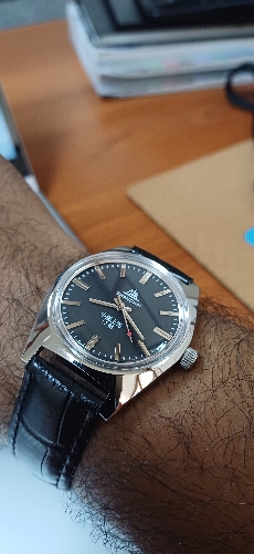 Only watch that fits my skinny wrist so well. Hand wind and hardly 24 hours reserve. For the price I am happy. Great entry product in to mechanical watches