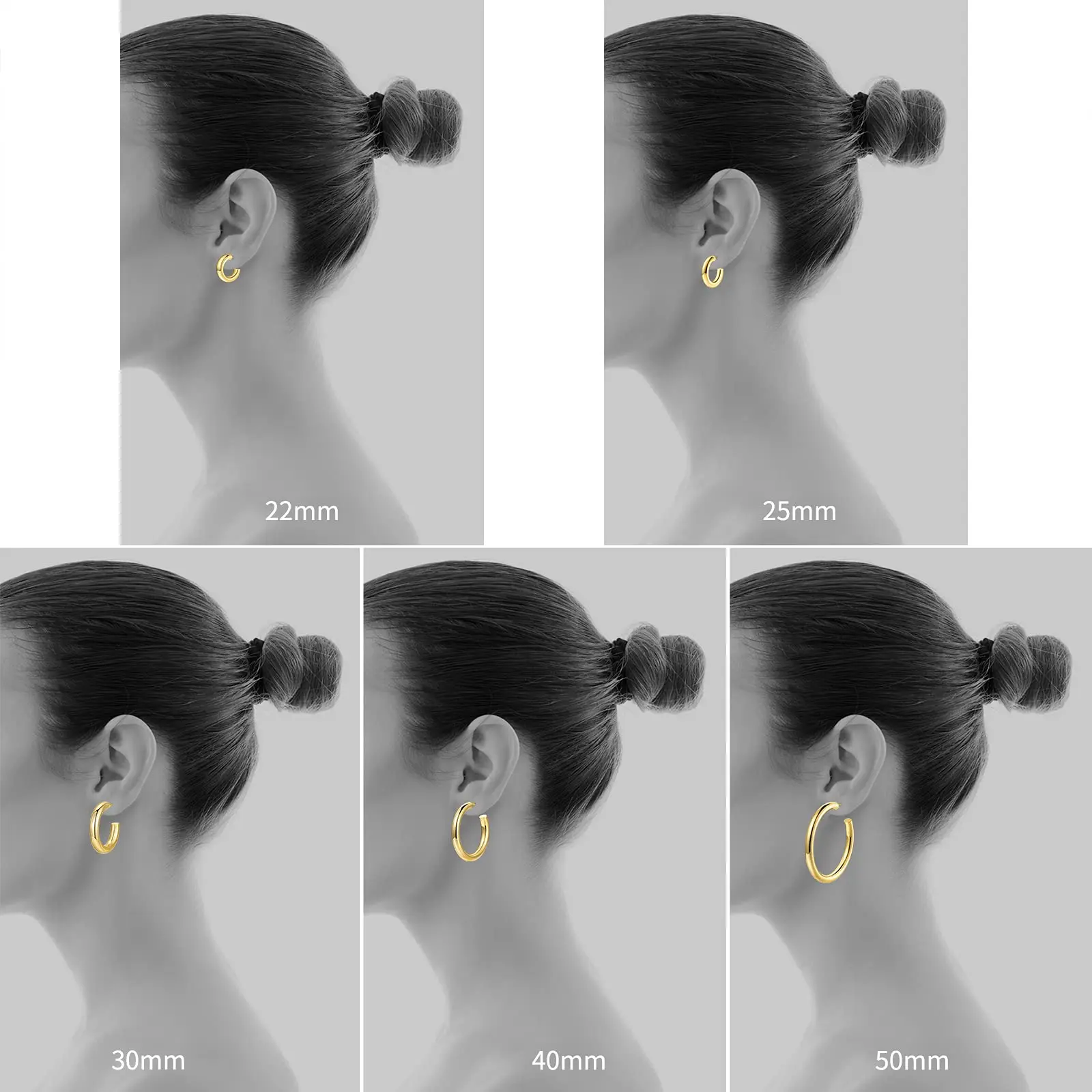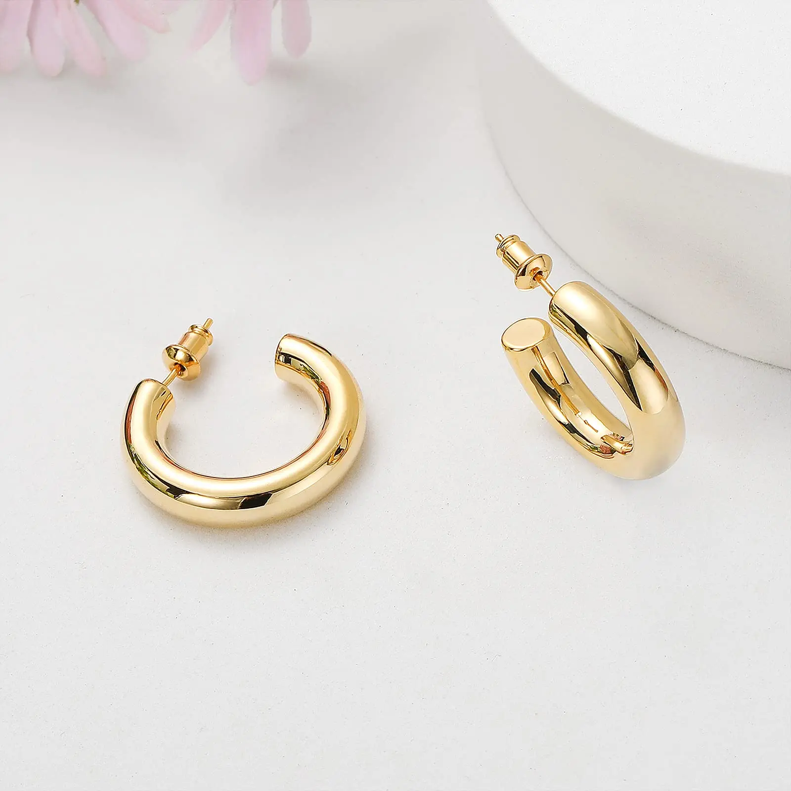 0.2″ (5mm) thick gold hoop earrings, 20 gauge post with sturdy secure clasp, easy to put on and take off