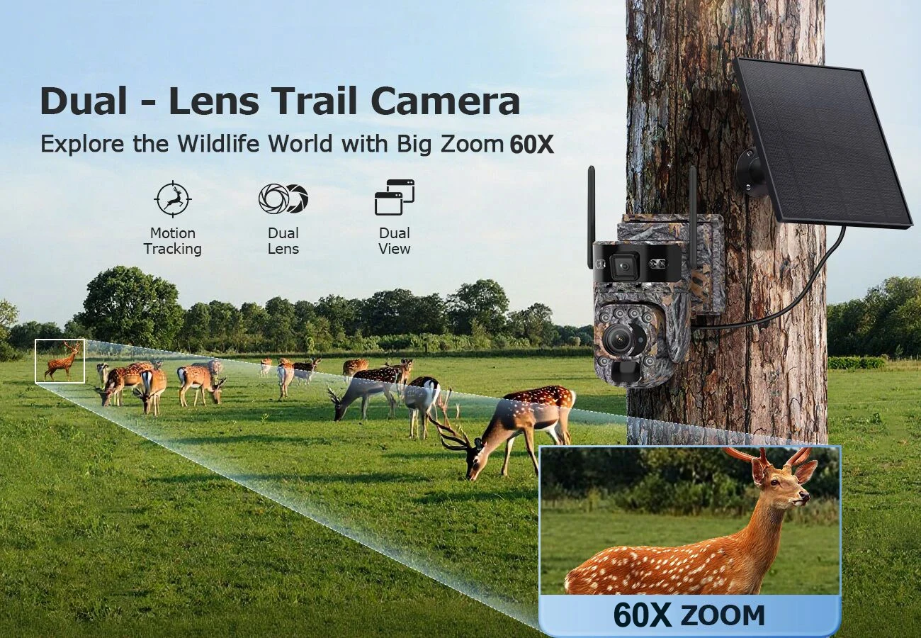 60X Solar Battery Solar Camera Dual Lens Dual View