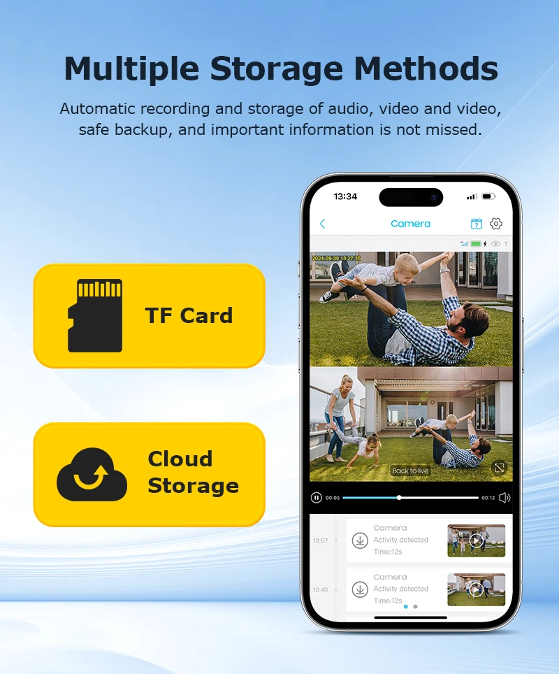 • Supports cloud storage and local TF card storage( YOU CHOOSE ONE )