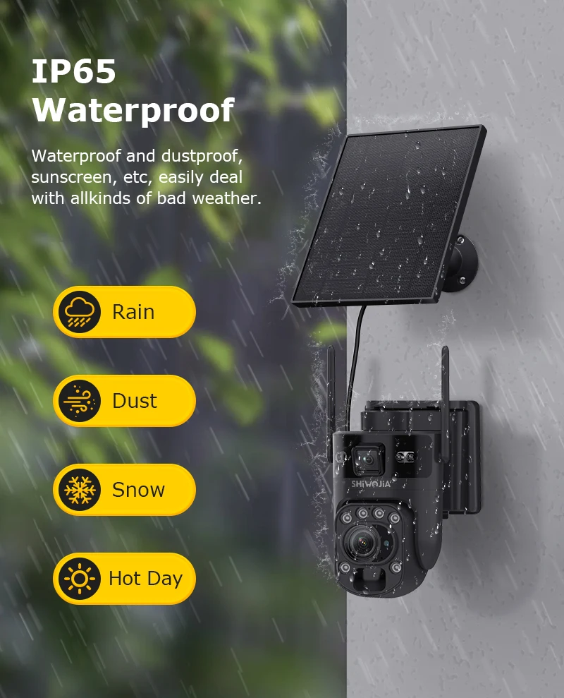 * The outdoor solar camera is equipped with an IP65 rated weatherproof outer casing, designed to operate the ptz cctv camera even in extreme weather conditions.