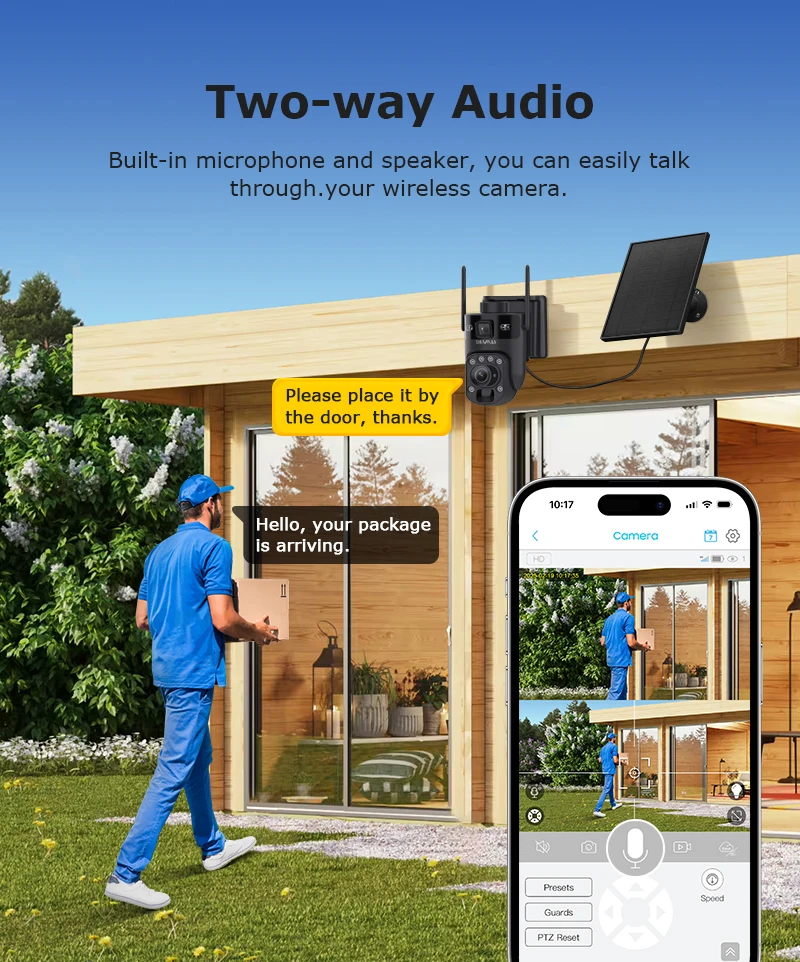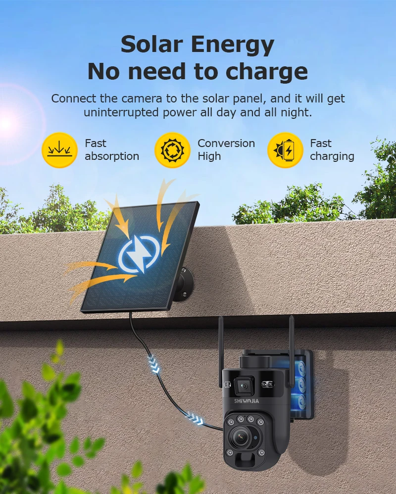 * You will get a solar camera with microphone and speaker. You can talk with your family at any time, anywhere like working, traveling, or on a business.