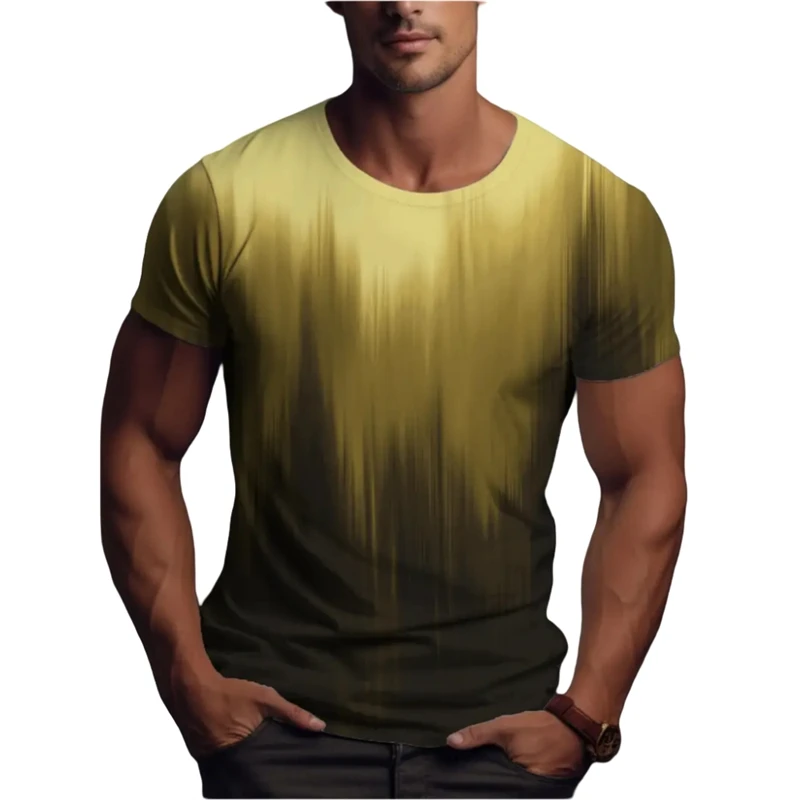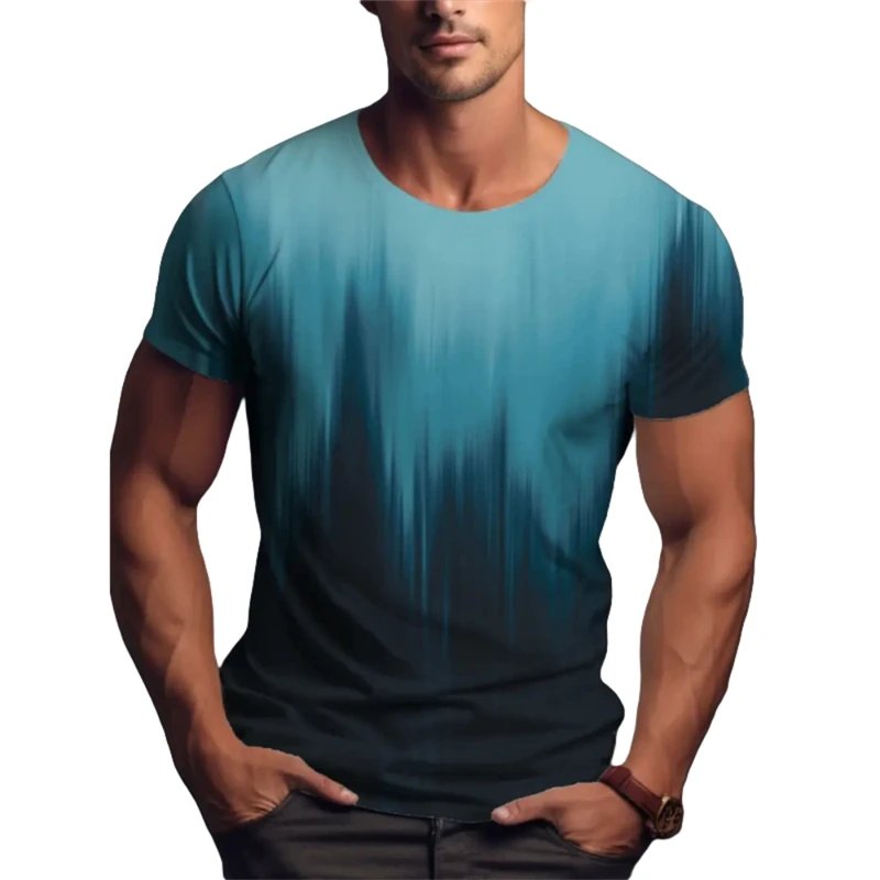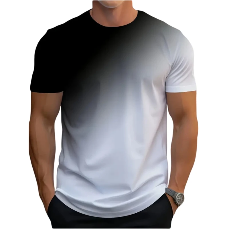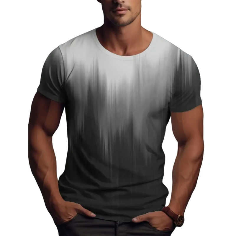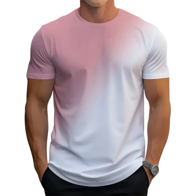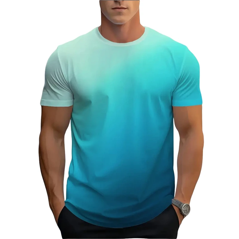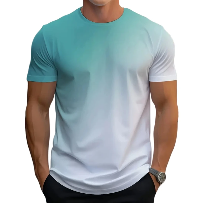 Simple Fashion Gradient T Shirts For Men Summer Trend Streetwear 3D Printed Short Sleeve T-shirts Loose Breathable Tees Tops
