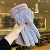 Ski Gloves Women Winter Fleece Thickened Warm Plush Cotton Waterproof Touch-Screen Gloves For Outdoor Riding Mountaineering