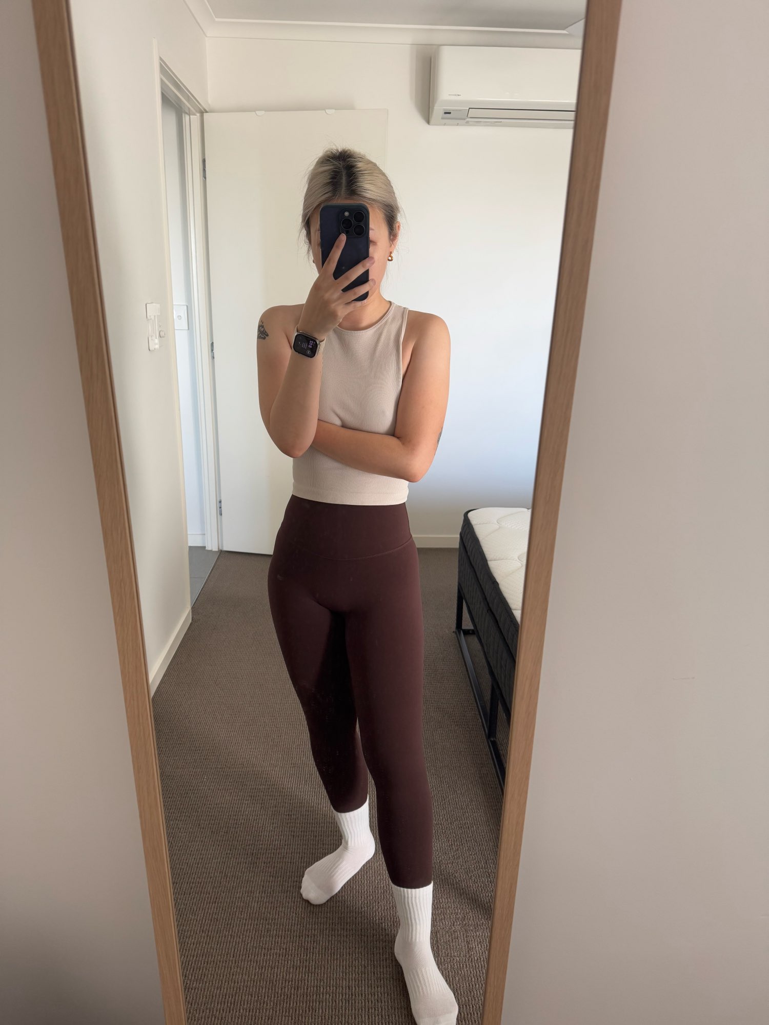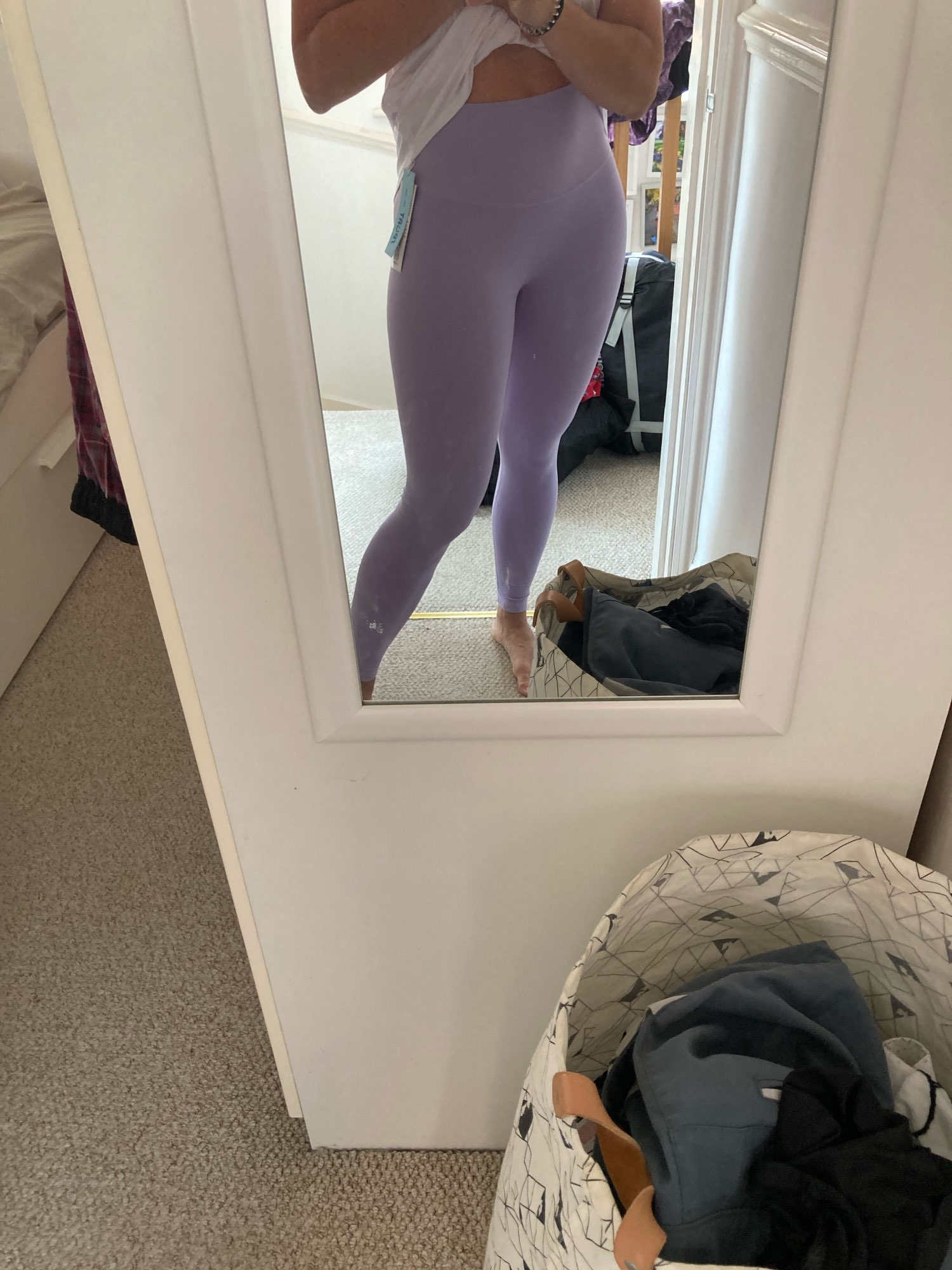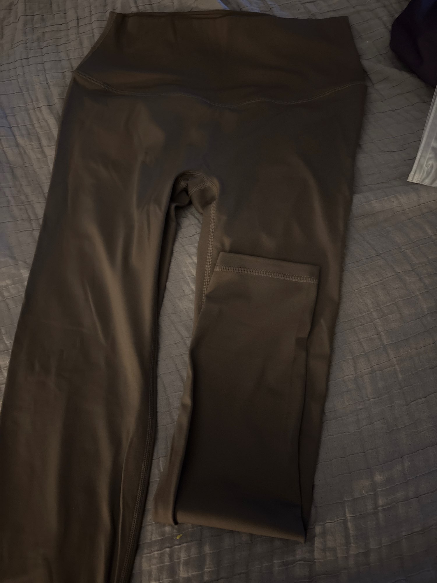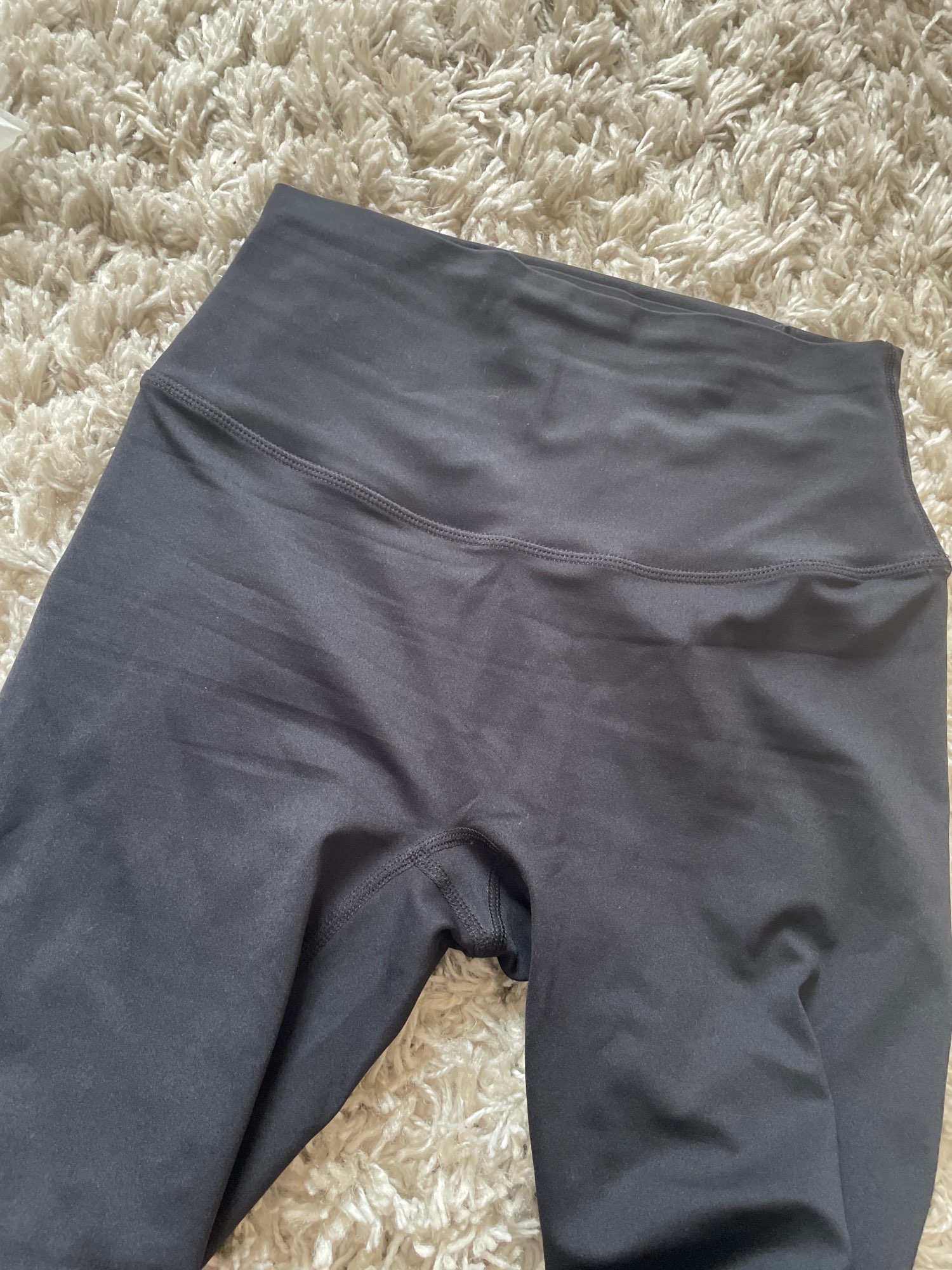Second time buying these, my first set were the light blue ones. Same issues as the blue ones - not a direct dupe of lululemon in the sense that the material is not as soft and buttery (these are more synthetic and shiny and therefore more slippery). They fold over more often. But they are the same size and length as my lululemon align no shows - these also have no front seam. For 10% of the price of lululemon, these are a great back up and to try more colours.