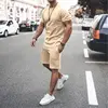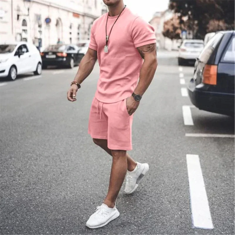 Solid Color Europe and The United States Men’s 13 Color Summer New Short Sleeve Tshirt +Shorts 2pcs Set Leisure Sports Men Suit