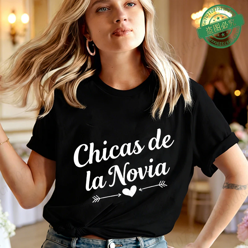 Spanish Girl Single Farewell Bachelorette Party T-shirts Heart Arrow Graphic Team Bride Tribe Blouses Short Sleeve O Neck Tops