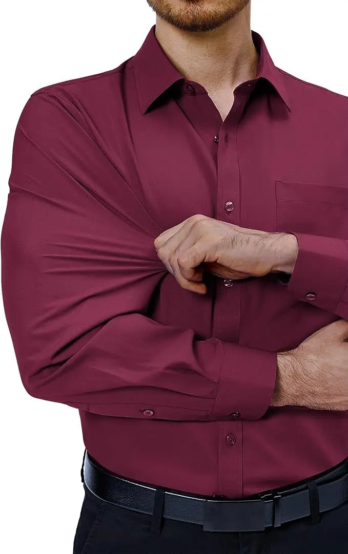 Spring high stretch shirt for men, long sleeved slim fit business suit, hanging white, no iron, silky smooth elastic shirt