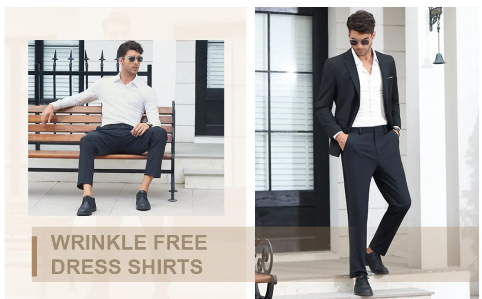 Spring high stretch shirt for men, long sleeved slim fit business suit, hanging white, no iron, silky smooth elastic shirt