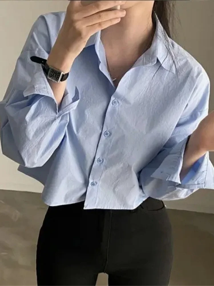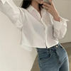 Spring New Casual Long Sleeve Women White Shirt Korea Style Solid Button Split Woman Crop Tops Blouse Party Clothing