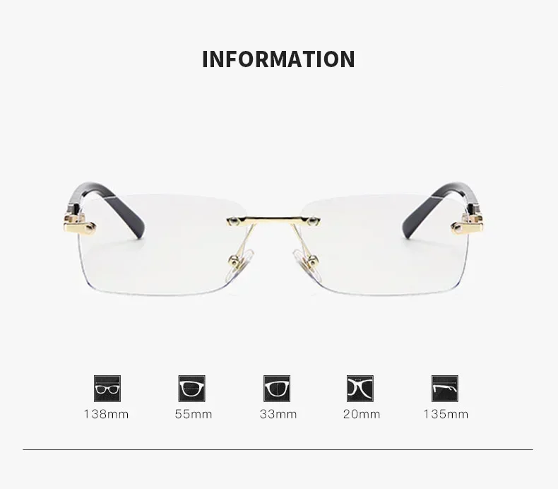 Square Rimless Photochromic Myopia Glasses Men Women Business Anti-UV Nearsighted Eyewear Retro Eyeglasses 0-1.0-4.0