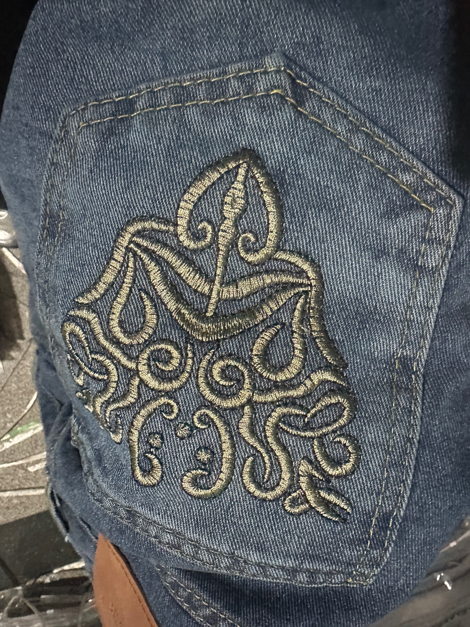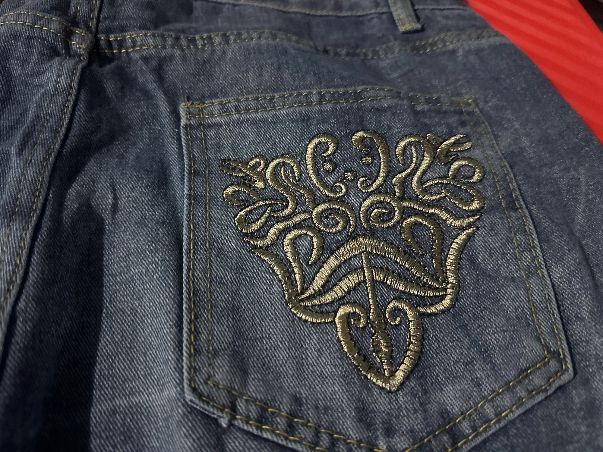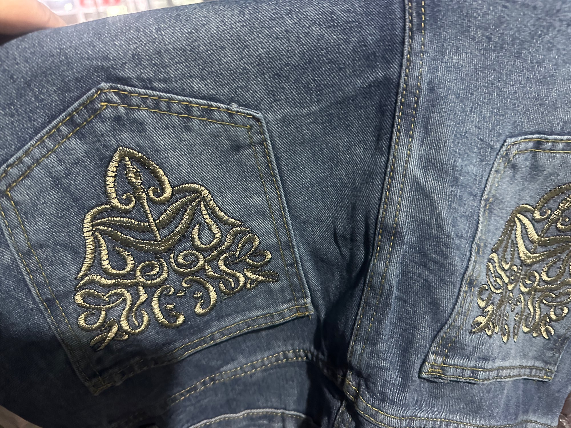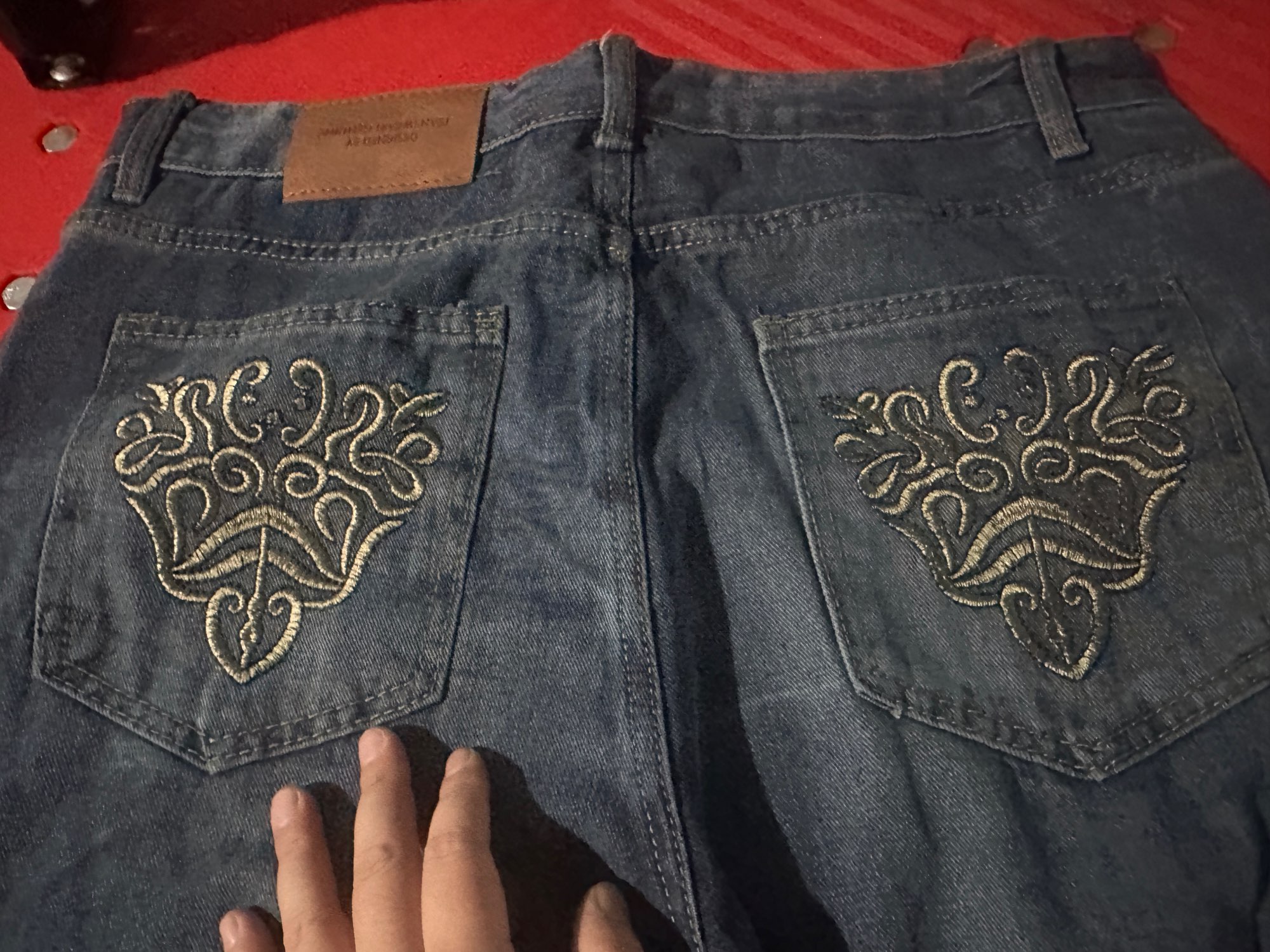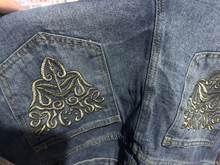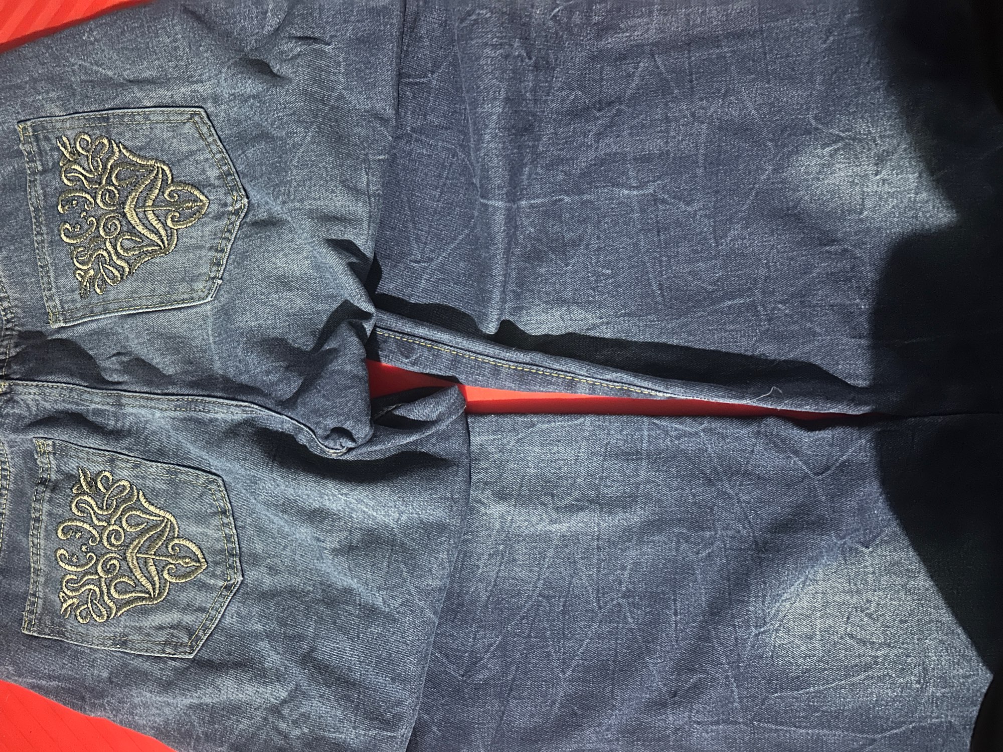 джинсы как на картинке, правда размер очень большой , но а так , с ремнем норм ,сзади вышивка, а не просто принт. материал очень приятный к телу(не просто полиэстер),довольно легкий, на лето будет идеально
