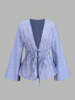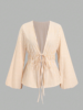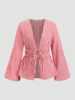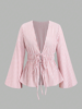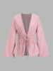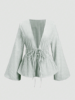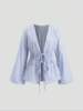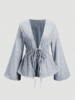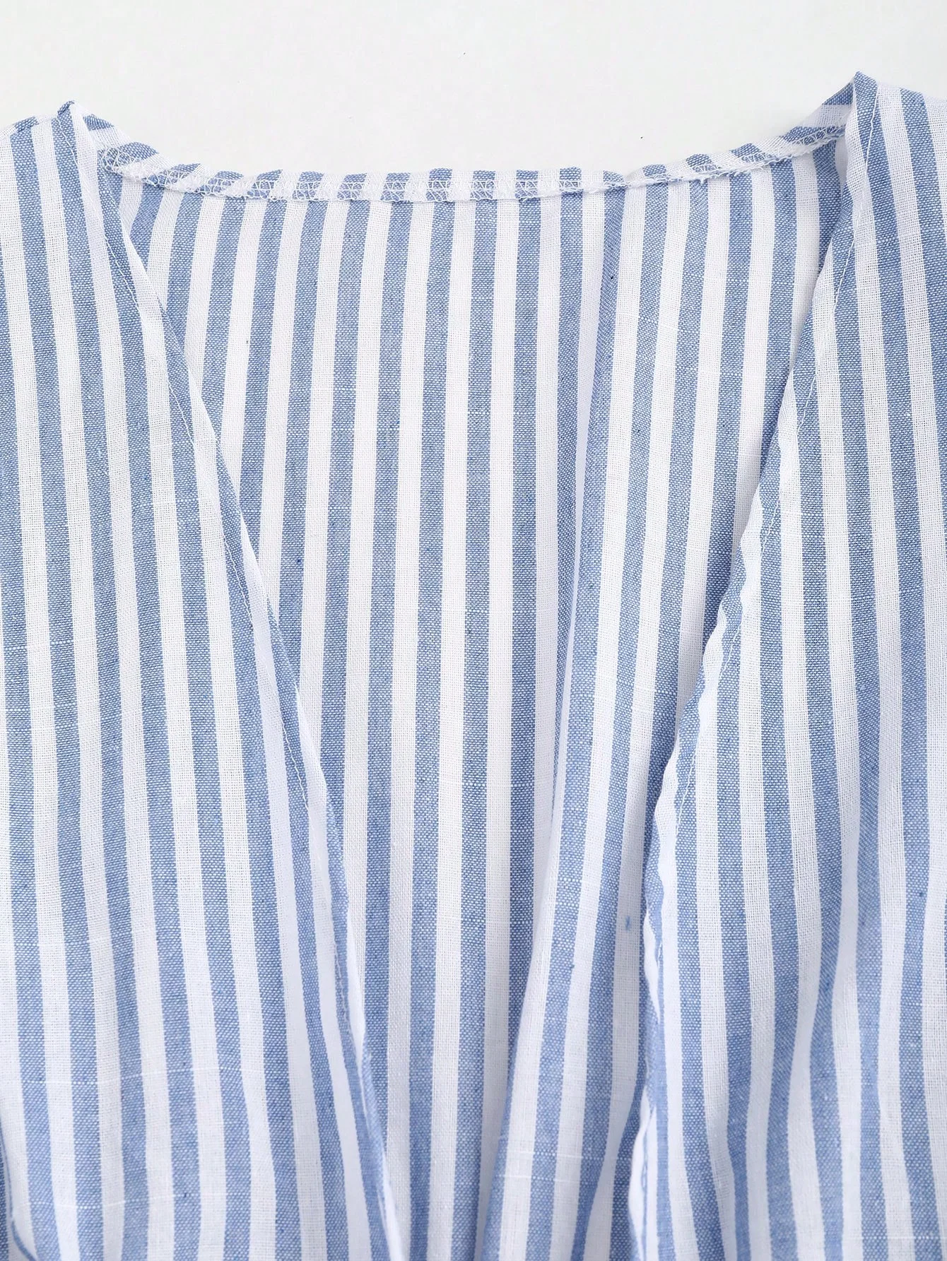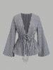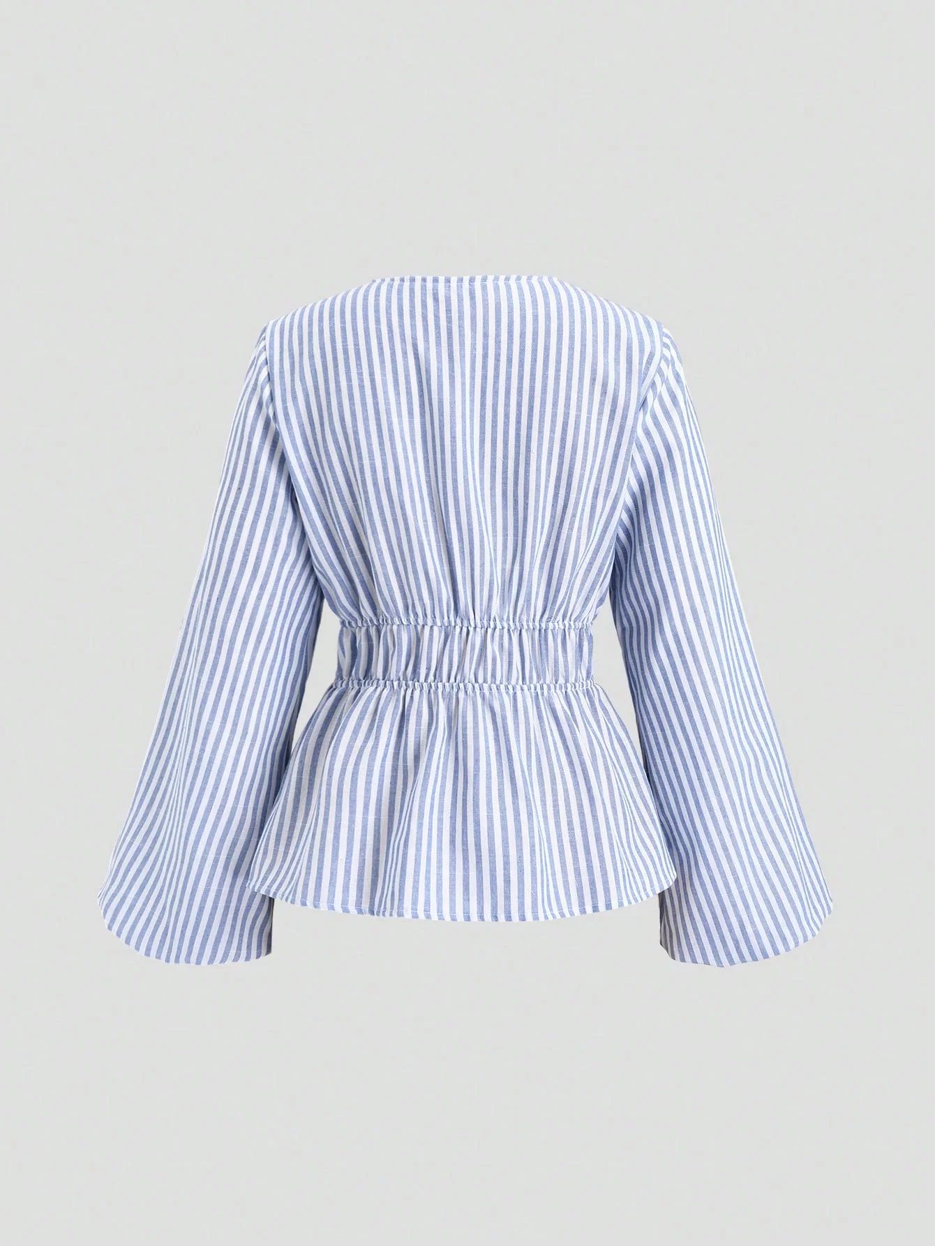 Striped Tie Bow Puff Sleeve Shirt