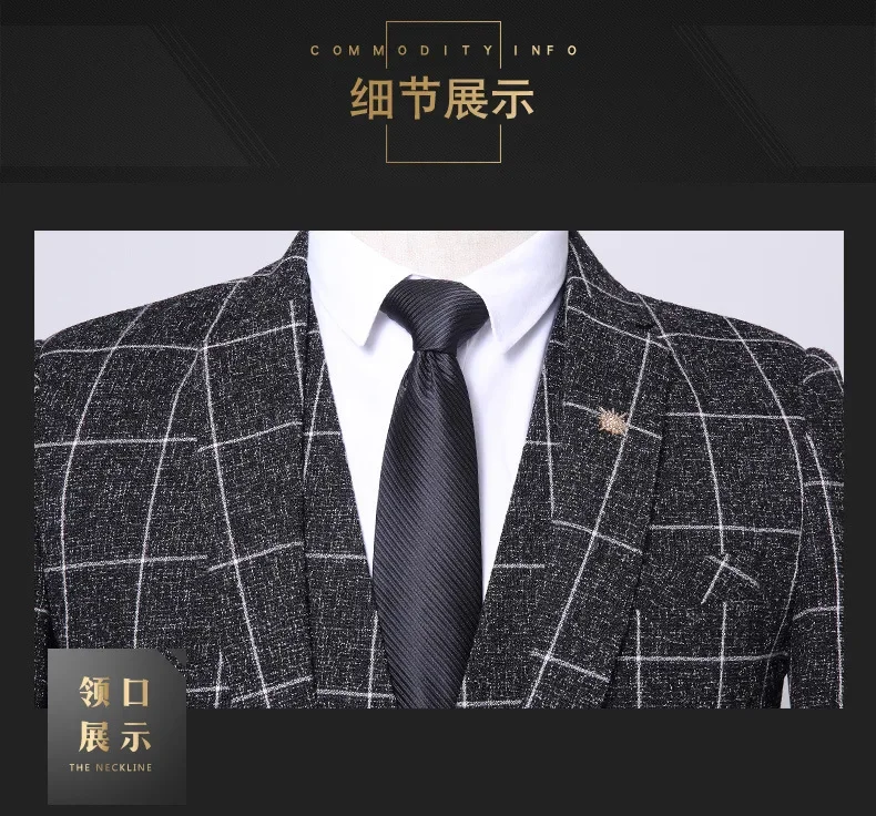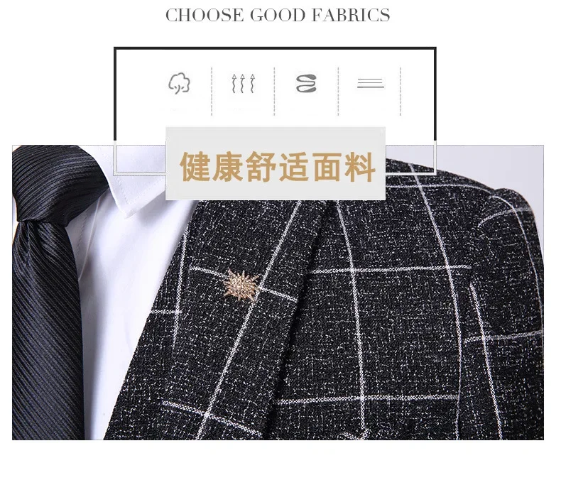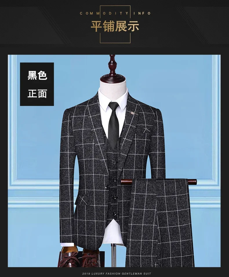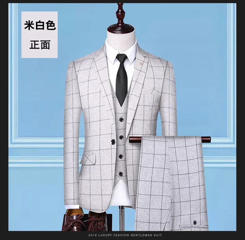 Suit (Blazer + Vest + Trousers) Fashion Business Casual Gentleman Men’s Italian Style Elegant Plaid Slim Formal 3-piece Suit