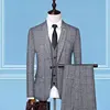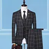 Suit (Blazer + Vest + Trousers) Fashion Business Casual Gentleman Men’s Italian Style Elegant Plaid Slim Formal 3-piece Suit