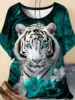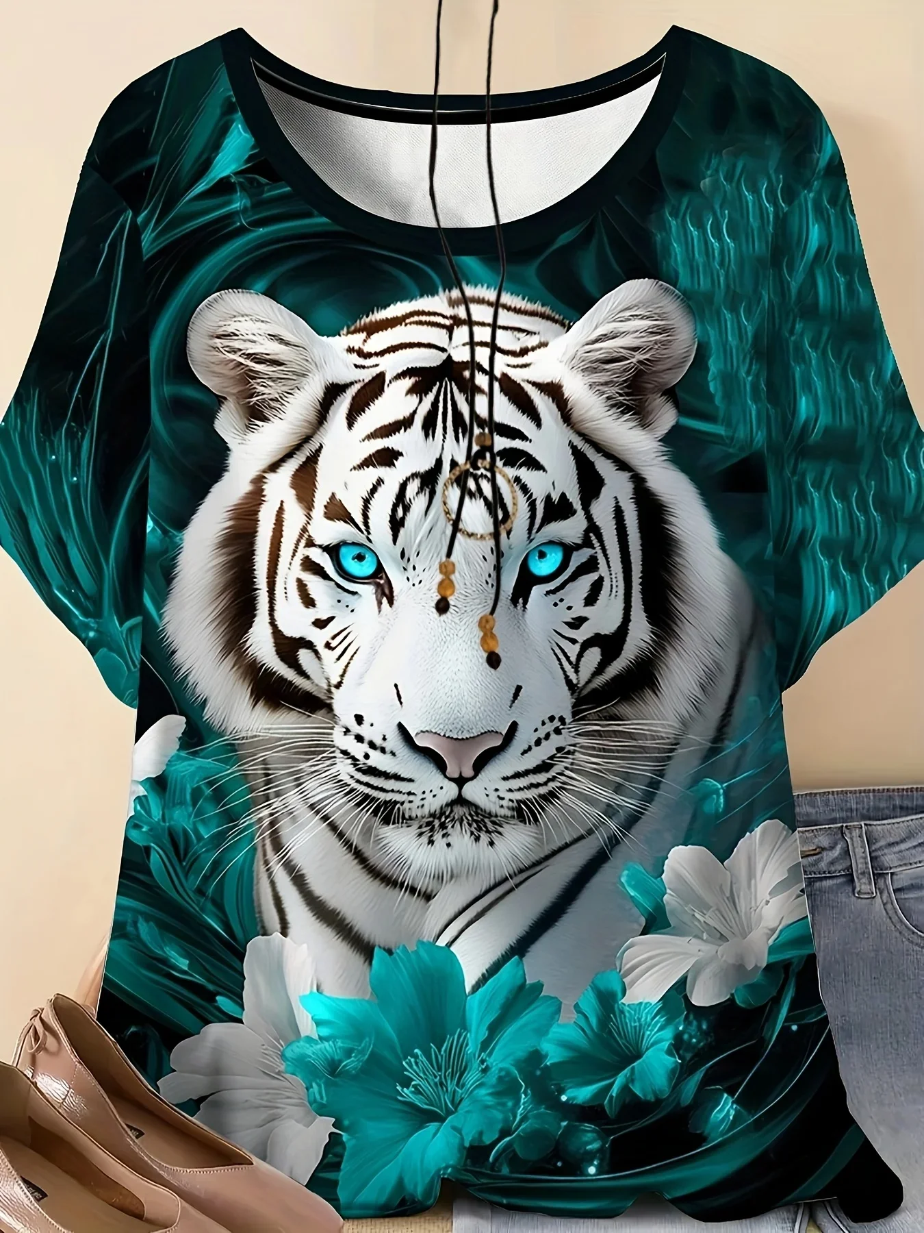 Summer 2025 Women Plus Size Casual T-shirt 3D Tiger Print Short Sleeved Women Sports Casual T-shirt Quick Drying and Breathable