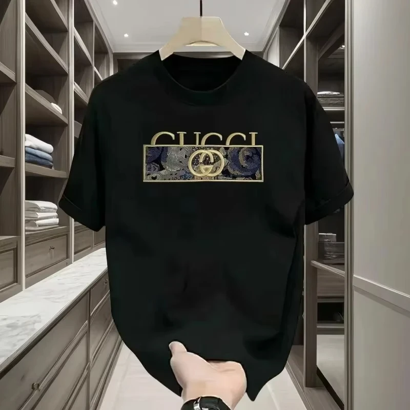 Summer 2026 New Brand Luxury Letter Pattern Printed Men’s 100% Pure Cotton Short Sleeve Round Neck T-shirt