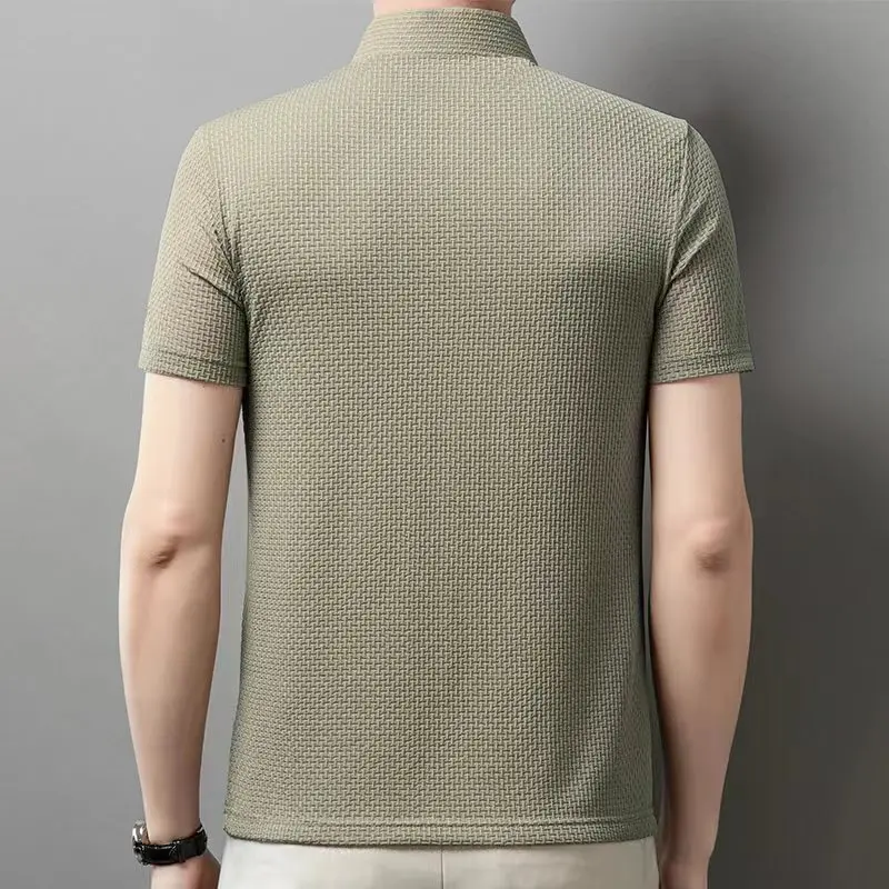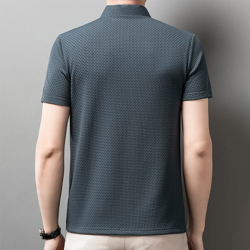 Summer Business Casual Polo Shirts Men’s Short Sleeved Bone Flower Solid Color POLO Shirt Fashion Breathable Versatile Polos Top
