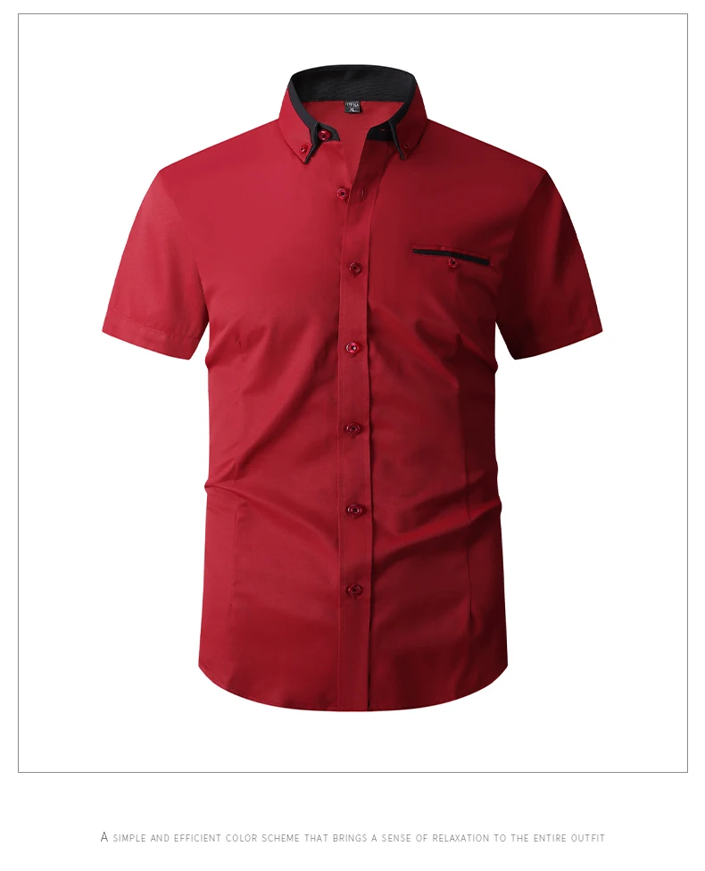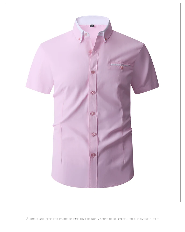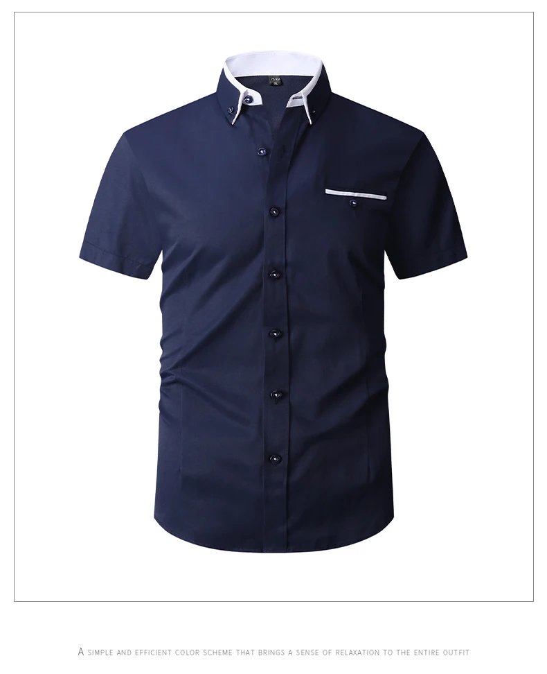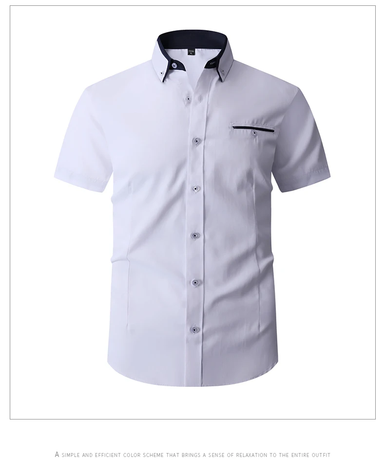 Summer Cotton Men’s Short Sleeve Business Shirt Formal Dress Shirt Contrast Collar Pocket Office Wedding Wear Plus Size M-5XL