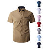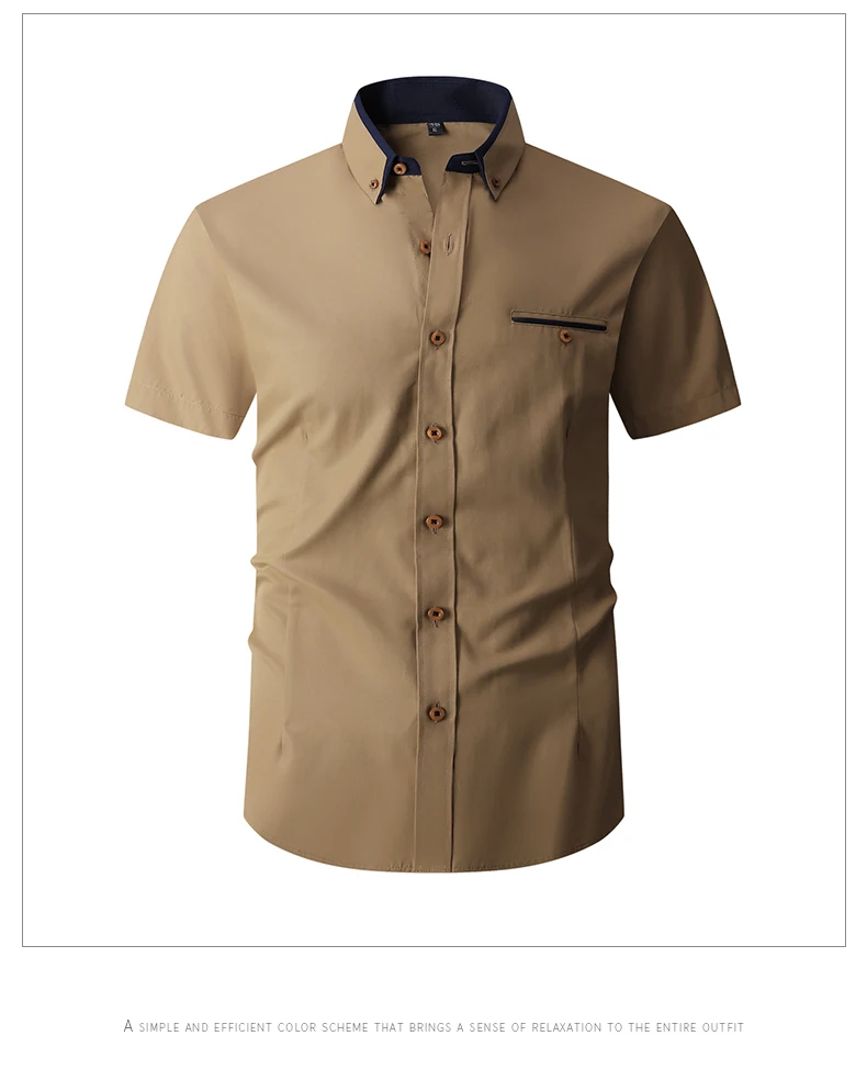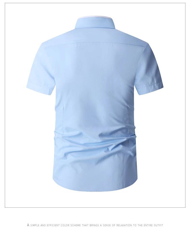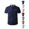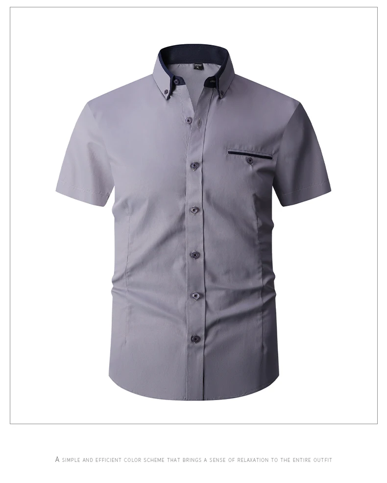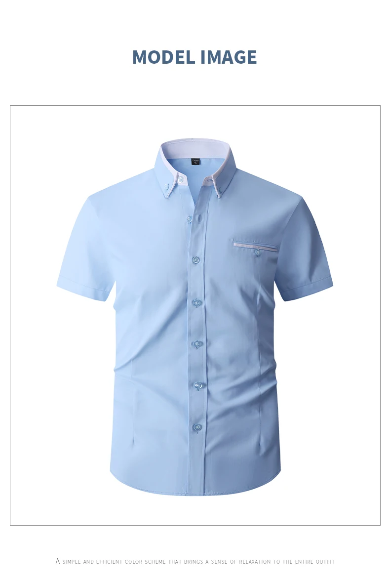 Summer Cotton Men’s Short Sleeve Business Shirt Formal Dress Shirt Contrast Collar Pocket Office Wedding Wear Plus Size M-5XL