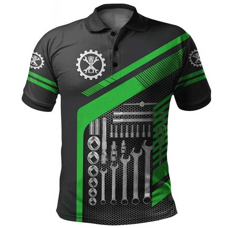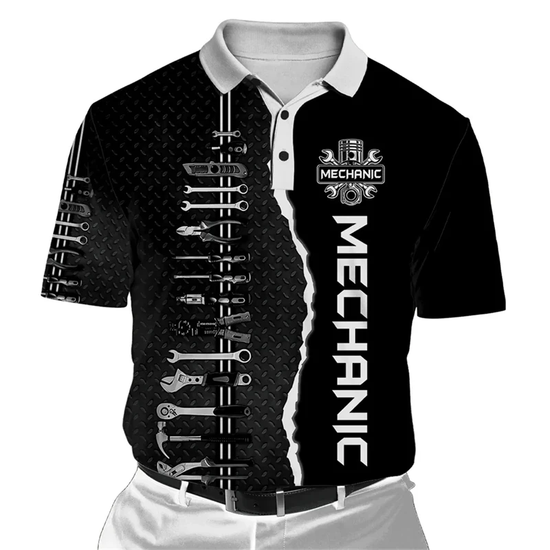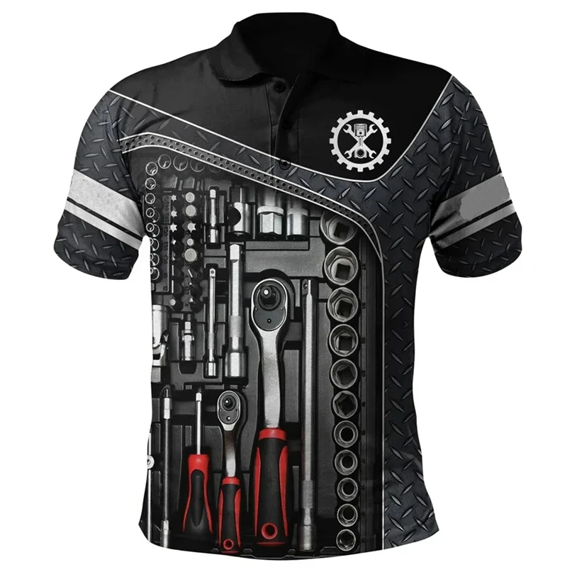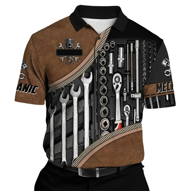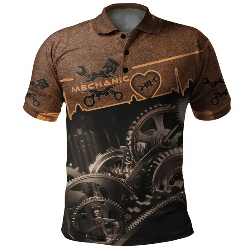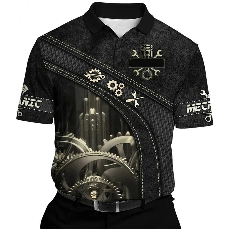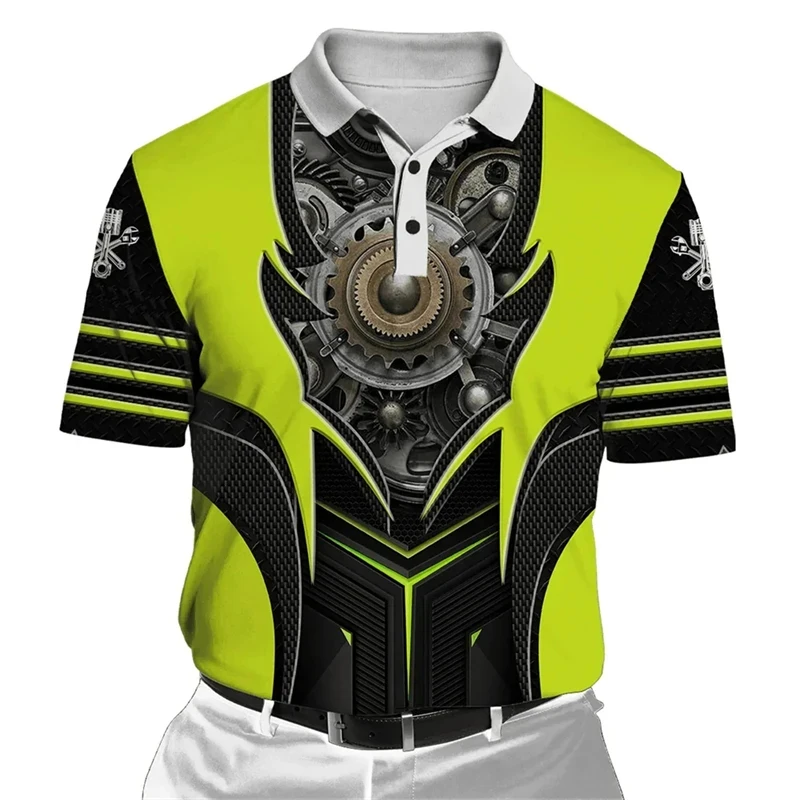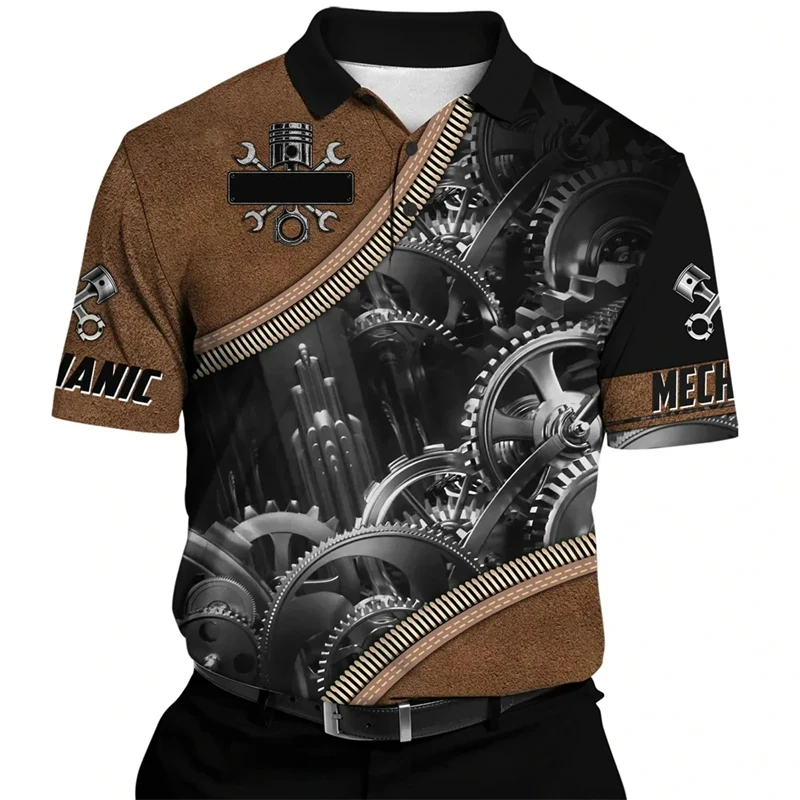 Summer Fashion Mechanical 3d Pirnt Graphic Polo Shirts For Men Clothing Casual Engineer Jersey Lapel Short-sleeved Male Tops 4XL