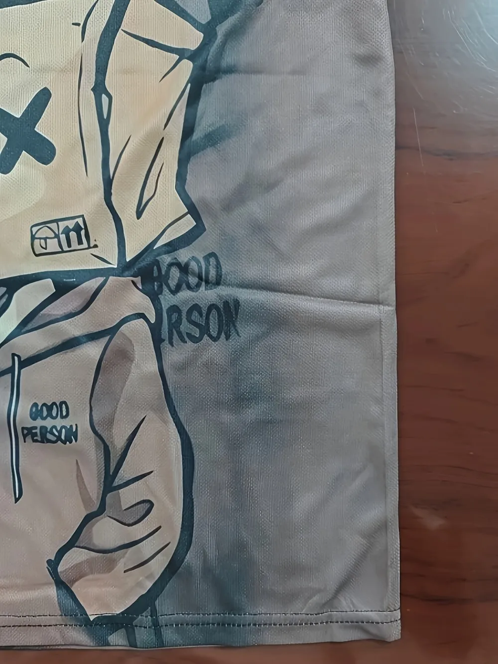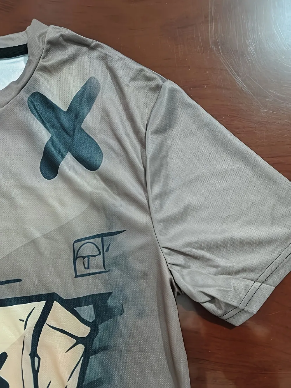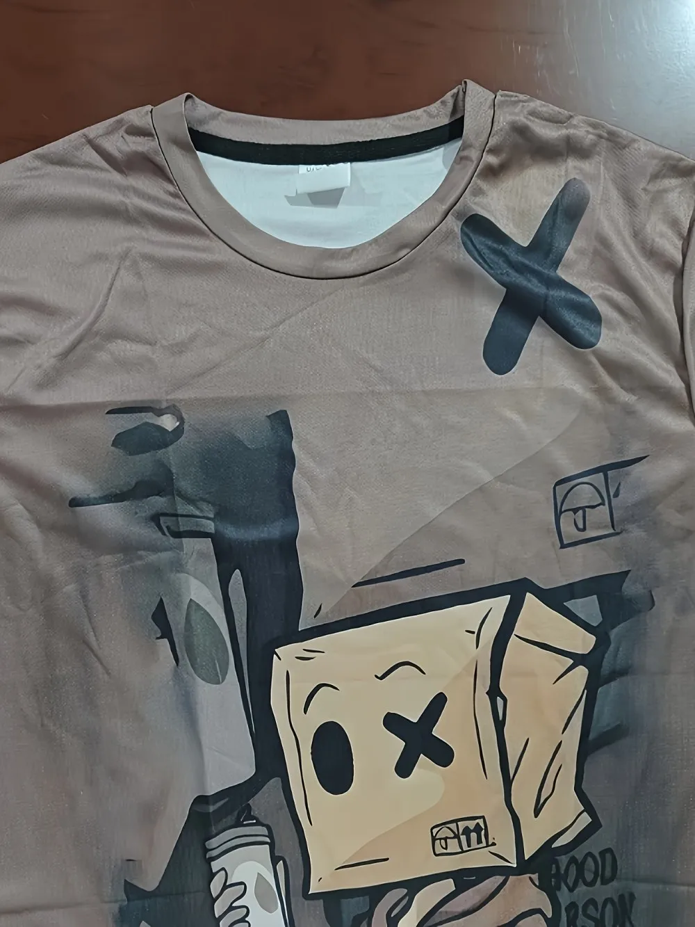 Summer fashion men’s cartoon cardboard doll print breathable round neck T-shirt shorts set outdoor street casual two-piece set