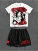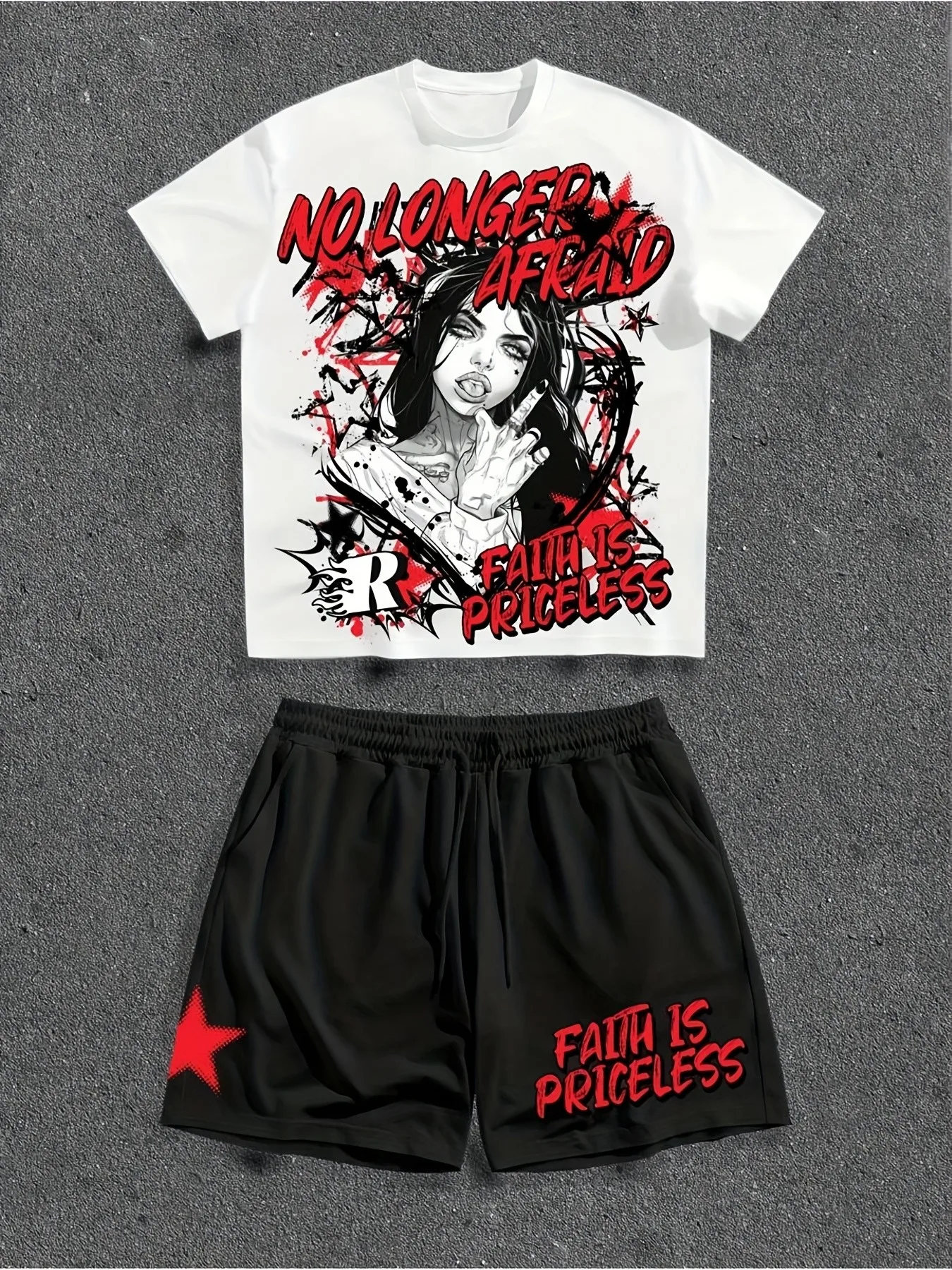 Summer fashion men’s character letter print comfortable breathable round neck T-shirt shorts set outdoor casual clothing