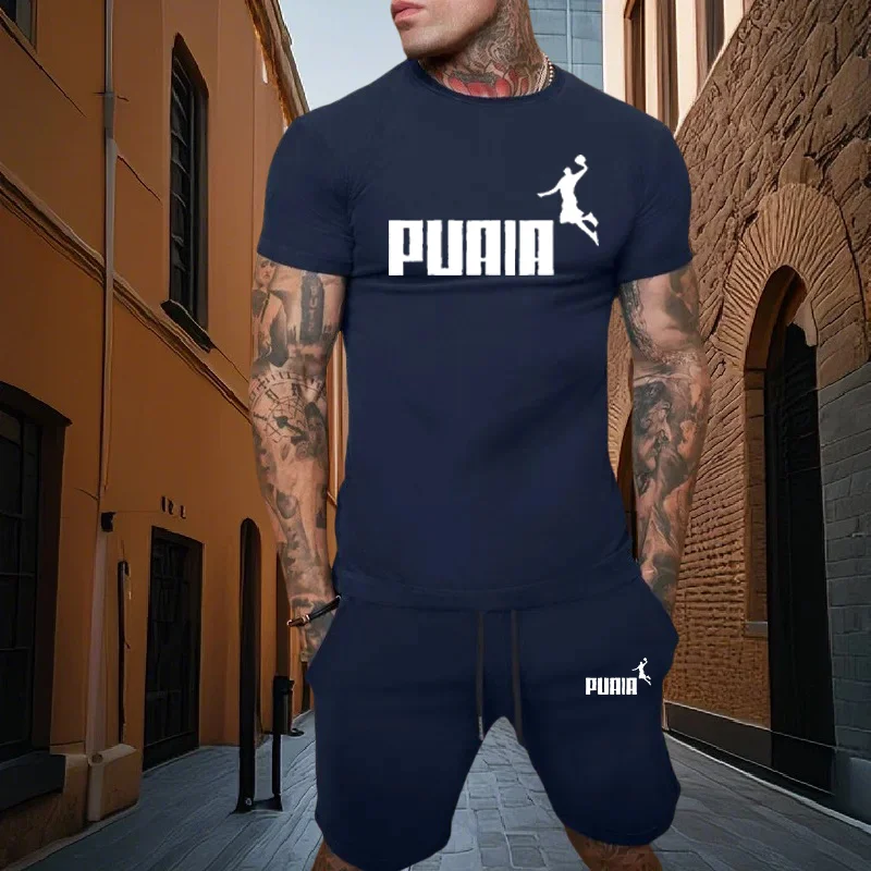 Summer fashion men’s two-piece set men’s casual sports set printed short sleeved set men’s T-shirt+shorts fitness sportswear