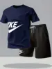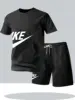Summer fashion street short sleeved sports suit men’s sports shirt set men’s round neck short sleeved shorts sports suit 2-piece
